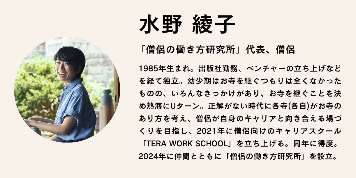 はじめまして。「僧侶の働き方研究所」の水野綾子です。