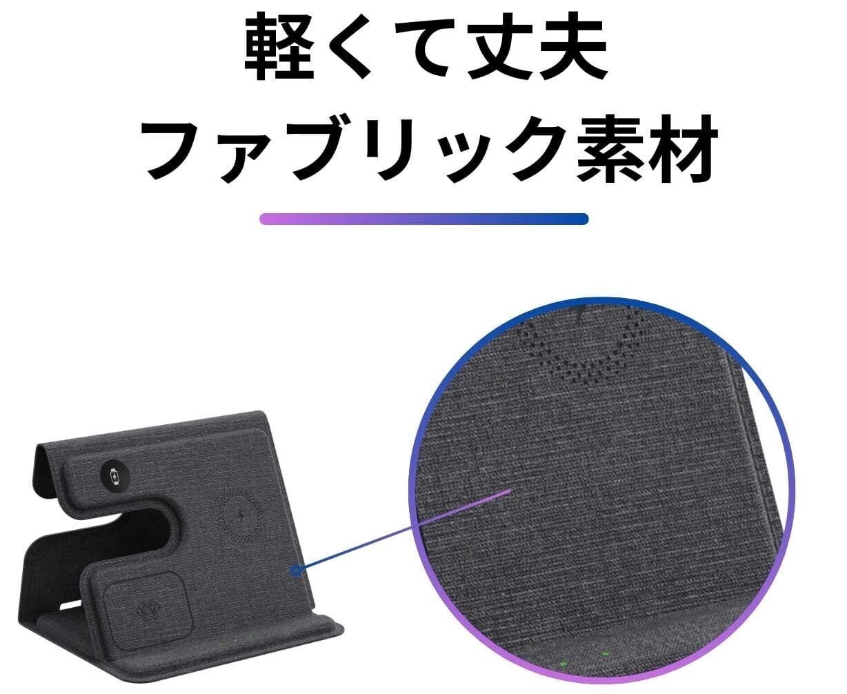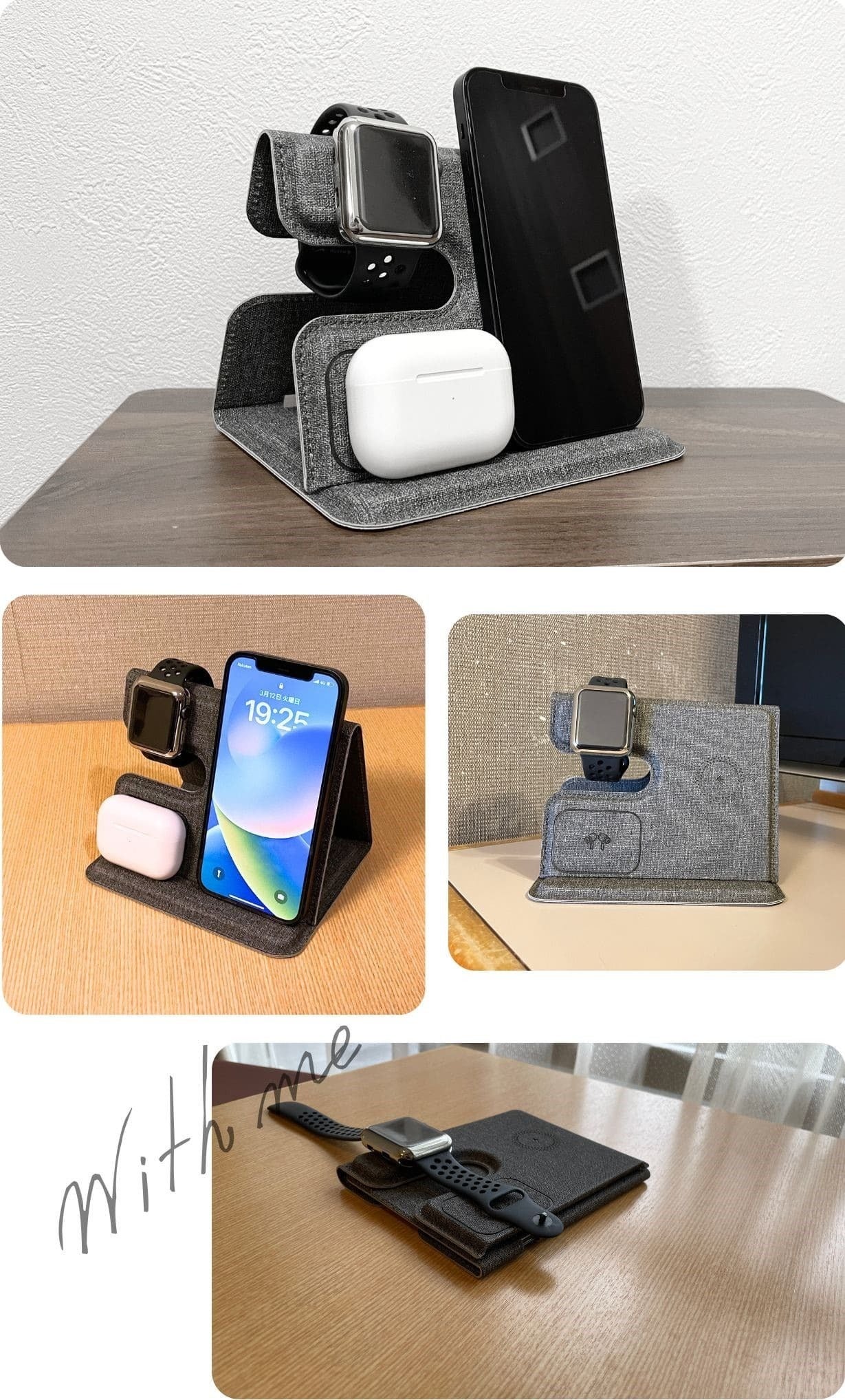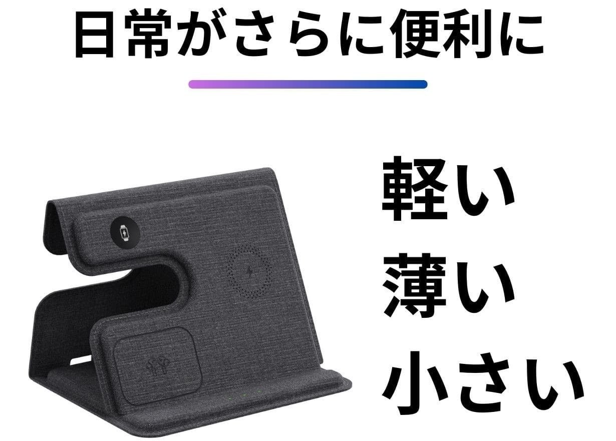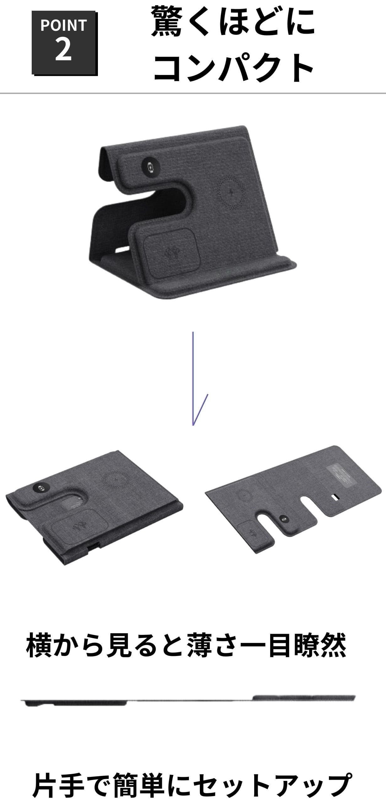 3in1 Wireless Chargerは折りたためるので、持ち運びにとても便利で、持ち物を少なくしたい方にピッタリです。