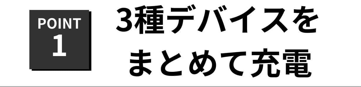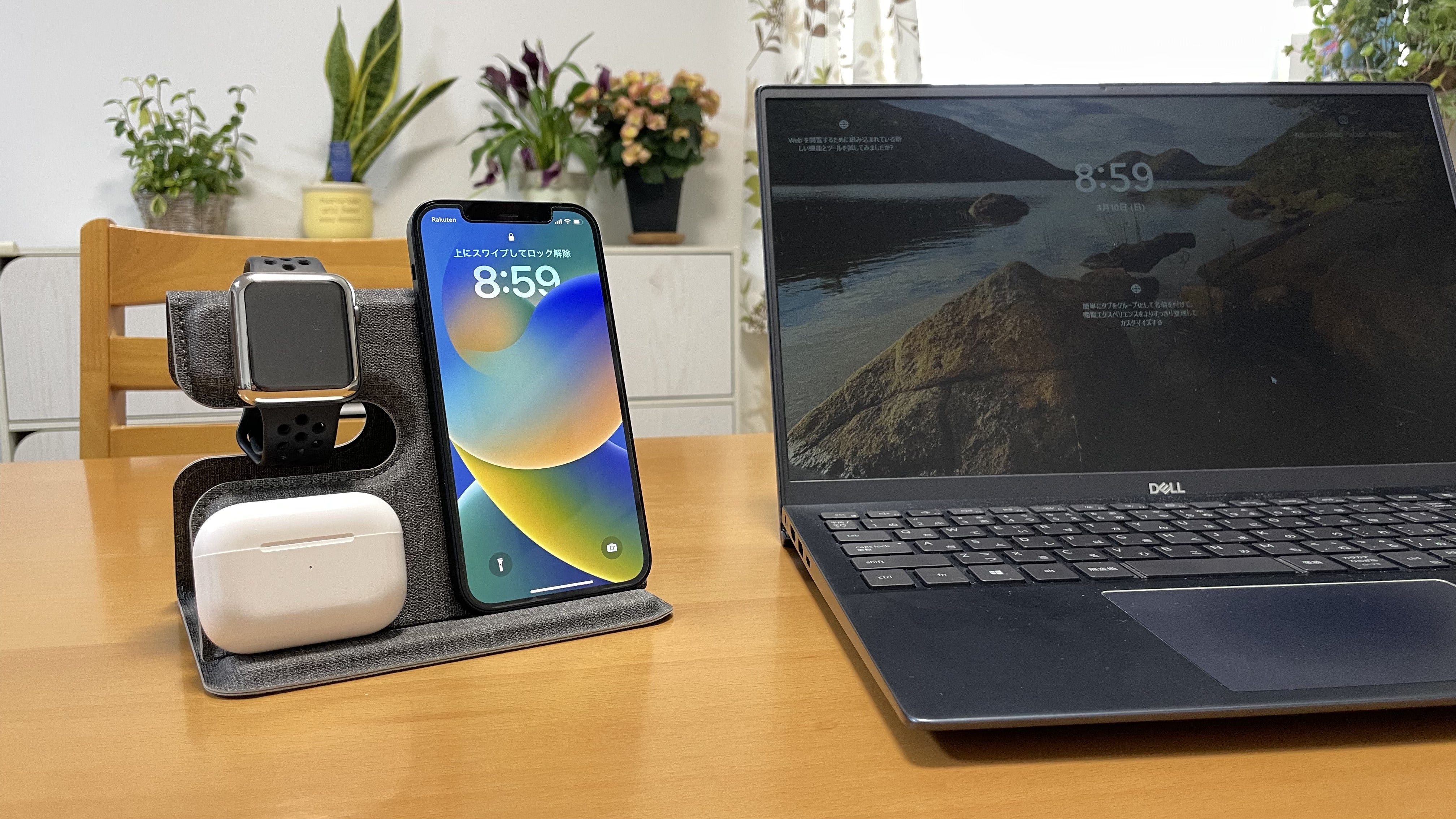 スマホ、イヤホン、アップルウォッチをまとめて充電。