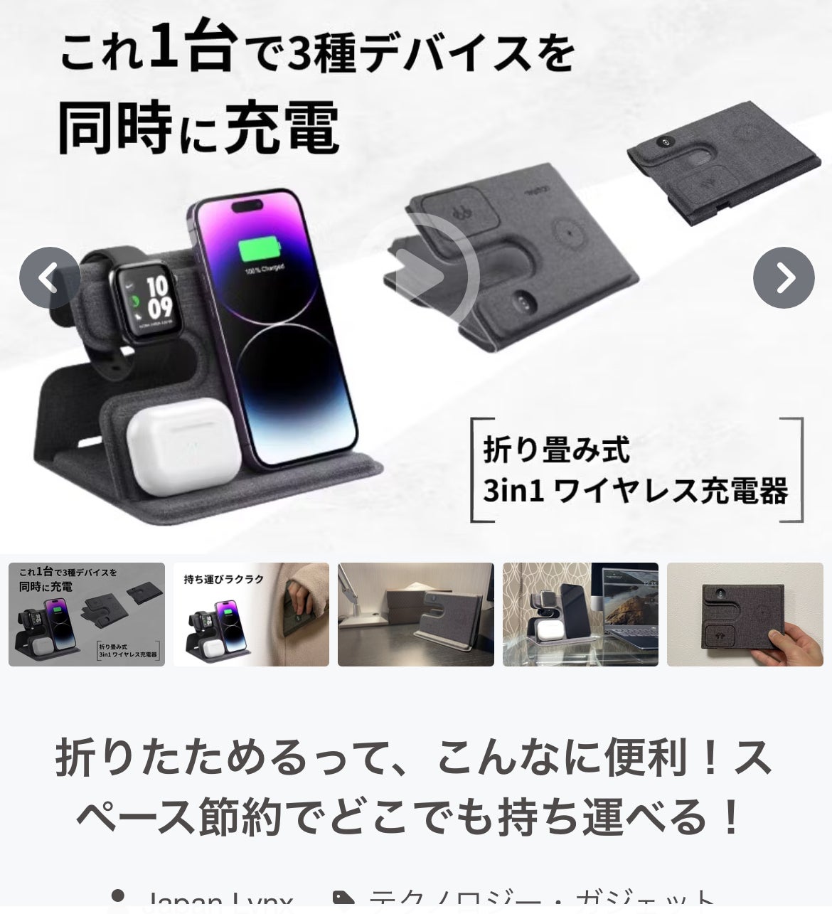 こんばんは。折りたたみ3in1充電器プロジェクトです。iPhone, Apple Watch, Airpodsを同時に充電でき、折りたたんで持ち運びが簡単なワイヤレス充電器となっております。早速ご支援をいただいております。プロジェクト成功に向けて、このプロジェクトを盛り上げていきますので、皆様応援よろしくお願いいたします。