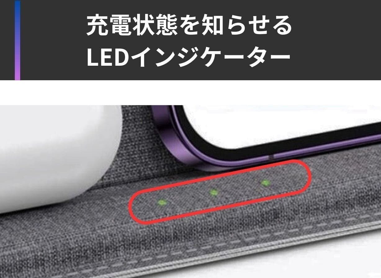 充電状態をわかりやすくするLEDインジケーターを前面に搭載。