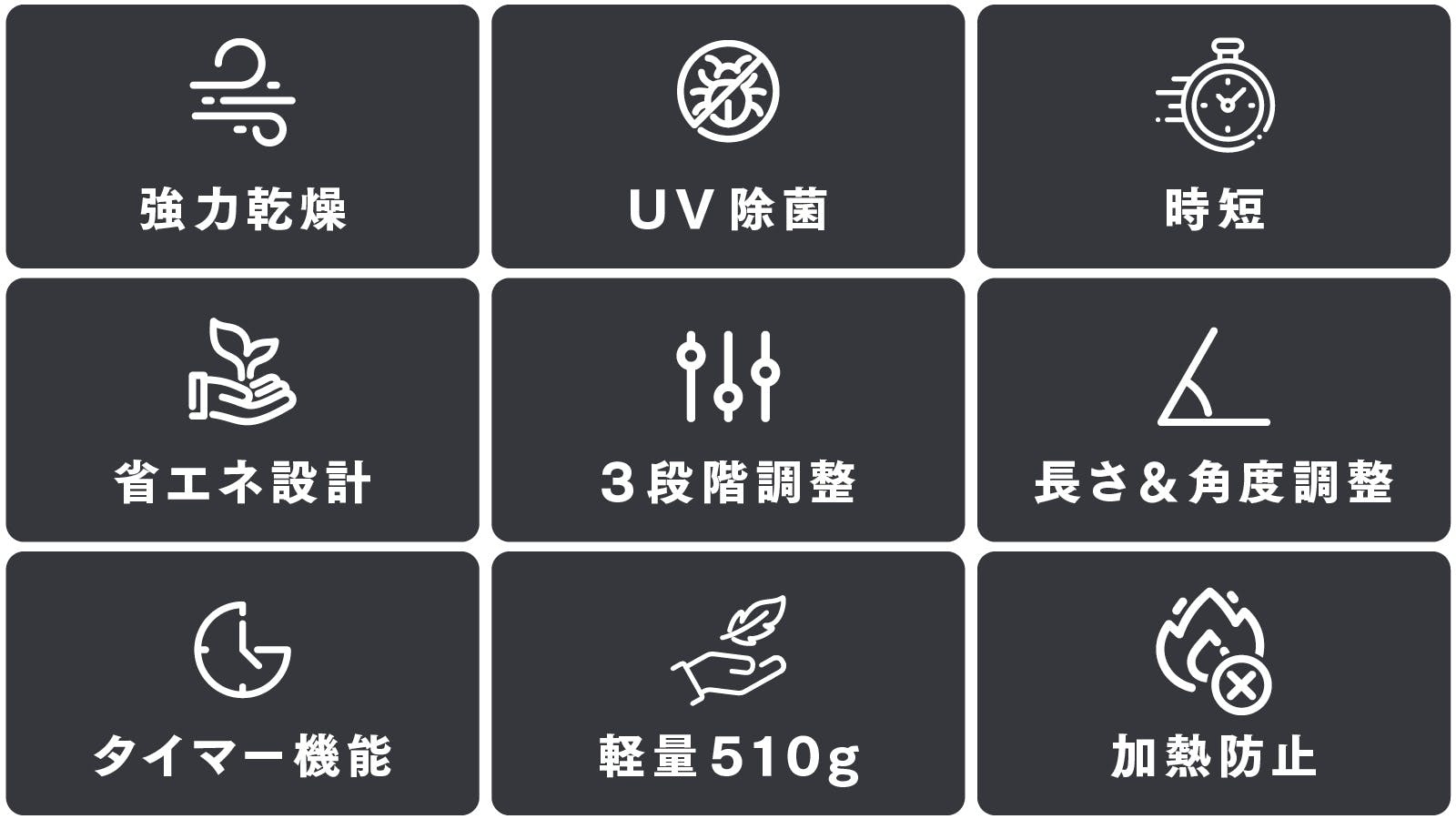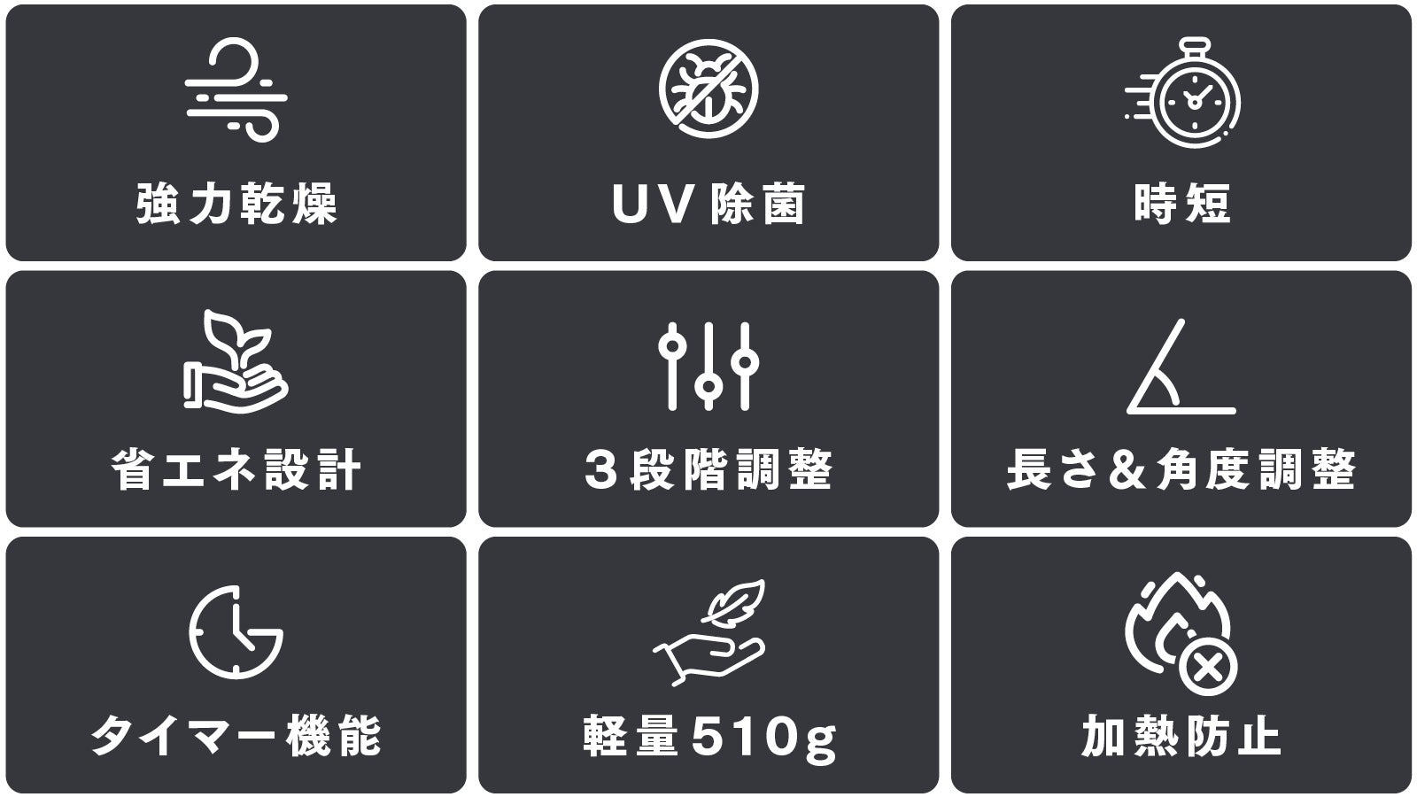 乾燥と同時に、細菌やウイルスをしっかり除菌することが可能です。