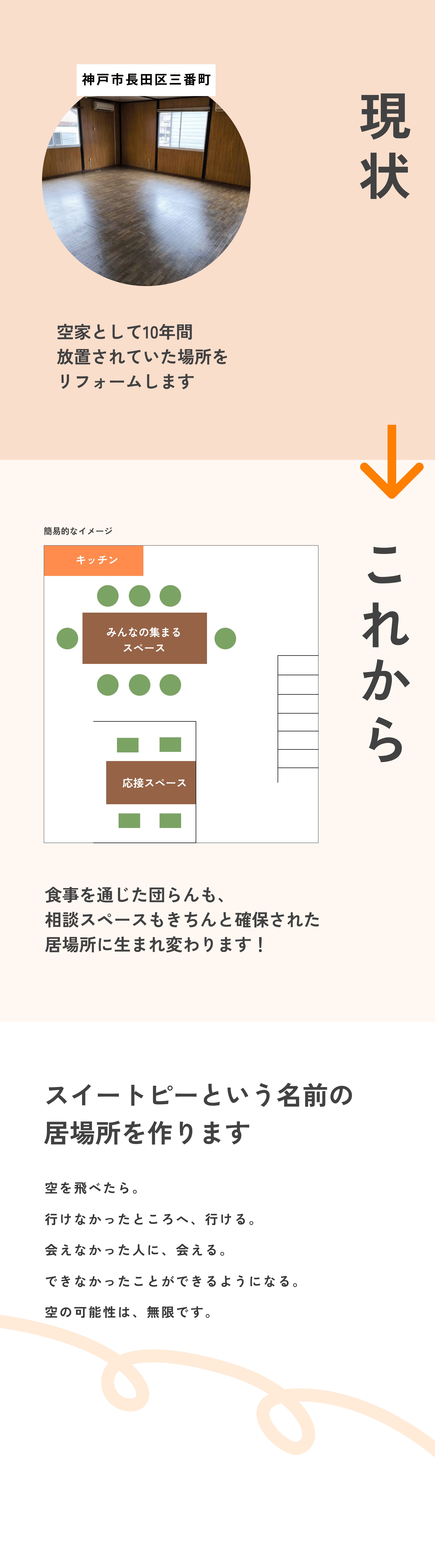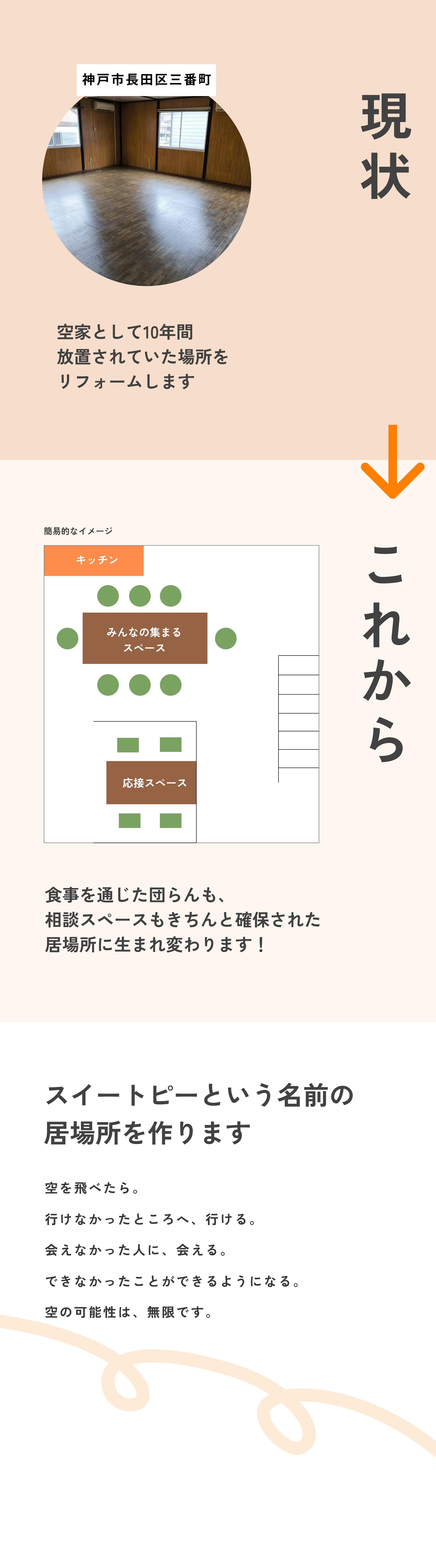 2024/11/25 07:56皆さん、おはようございます。いよいよ明日11月26日に皆さんのご支援のおかげで立ち上げることが出来た「神戸若者・子育てサポートセンタースイートピー」がオープンします!!稼働日は火曜日・水曜日・金曜日の14時から19時までとなっています。ぜひ皆さん、遊びに来てください。お待ちしております。居場所内に備品もだいぶ揃ってきました。机の上にあるのは配布予定の子ども服です。奥の冷蔵庫の前は、居場所に来てくれた人達がくつろげるスペースにしてソファーやローテーブルを置きたい。お越しになられるときは、ご連絡いただけると有り難いです。これからもどうかこの居場所をよろしくお願いします。 もっと見る