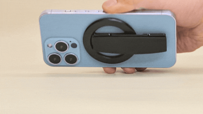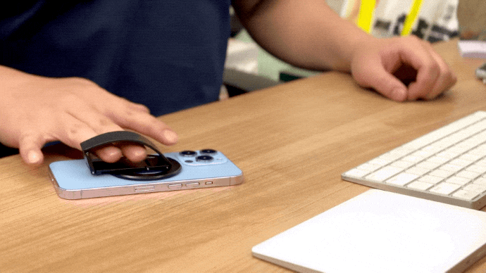 スマホに近づけるとパッと一瞬で吸着され、スマホスタンドとして利用可能です。