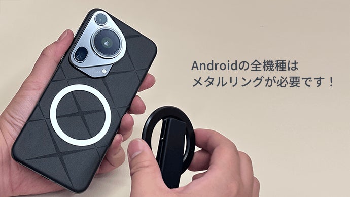iPhone 15/14/13/12シリーズを除いて、他のiPhoneシリーズとAndroidの全機種はメタルリングが必要です。ケースを装着している場合、付属のメタルリングスマホに貼り付けて本製品を使用することができます。
