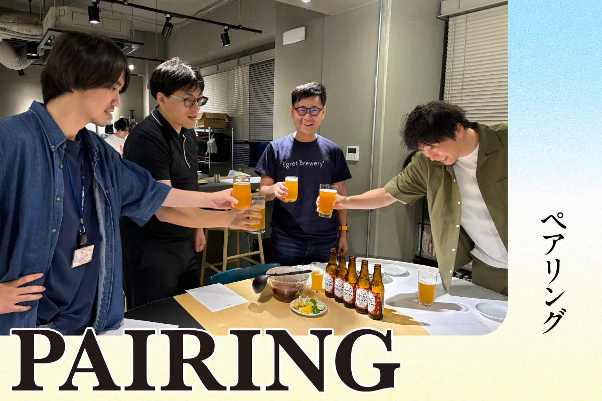また、より「おもしろき世界」を追求するために、コンセプトを「日本食に合うビール」としました。「ビールになじみのある外国人」に対してはそれに合う「日本食」を、「普段から日本食を食べている日本人」に対してはそれに合う「ビール」を提案し、「ビール」×「日本食」のペアリングを楽しんでもらうことを目指したのです。そして、そのコンセプトをより良い形にするべく試作・試食を重ねました。