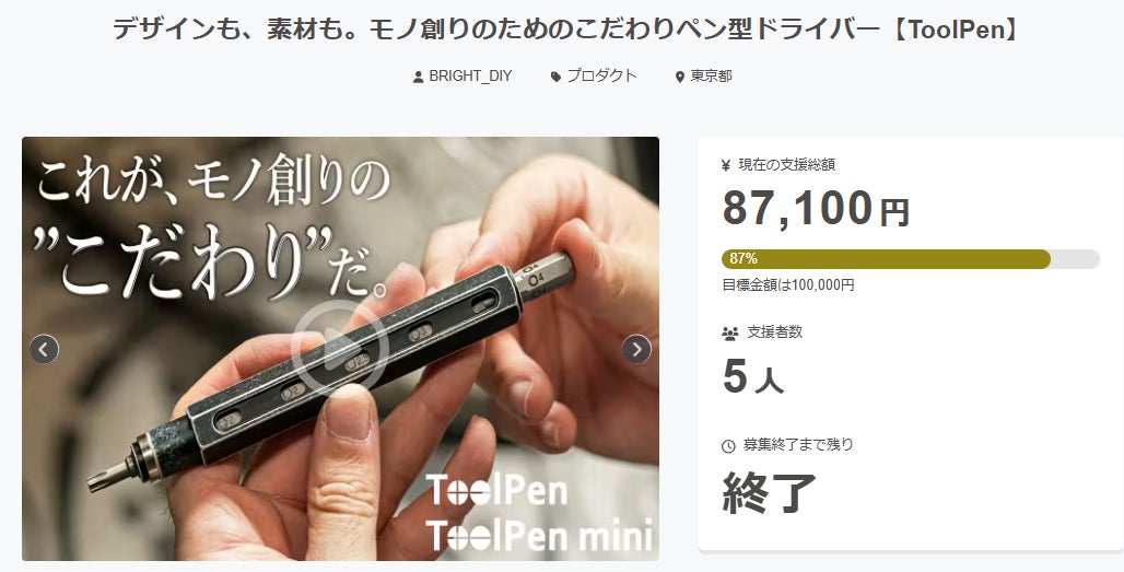 皆様にご満足いただけるリターンをお届けできるよう、全力で取り組んで参りますので引き続き、「デザインも、素材も。モノ創りのためのこだわりペン型ドライバー【ToolPen】」をよろしくお願い致します。