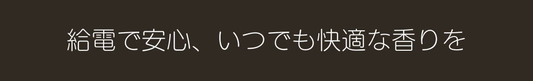 Type-C給電式で設計されており、充電式ではなく、給電しながら使用するタイプです。これは、安全性を最優先に考慮した結果です。バッテリーを内蔵しないことで、長時間の使用でも過熱や火災のリスクを抑え、安心してお使いいただけます。常に安定した電源供給が可能なため、どんな場面でも快適に香りを楽しむことができます。