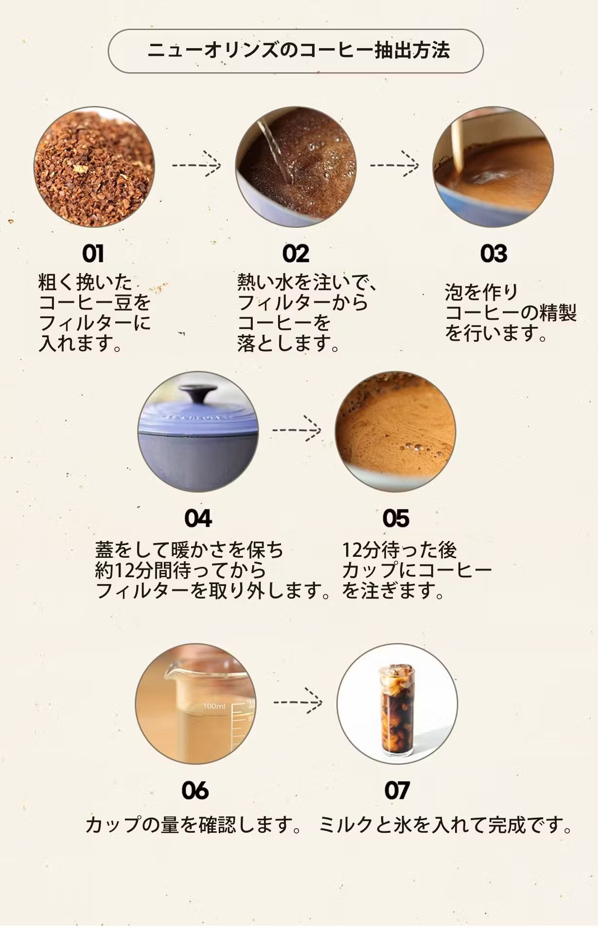 ※ニューオーリンズコーヒーの豆は挽いた状態です。
