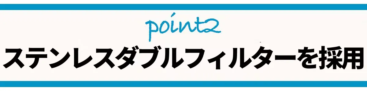 SHELBRUは"ダブルフィルター"を採用。外側は0.5mm内側は600メッシュの目の細かいフィルター。これは、ドリップ用の紙と同レベルの細かさ。