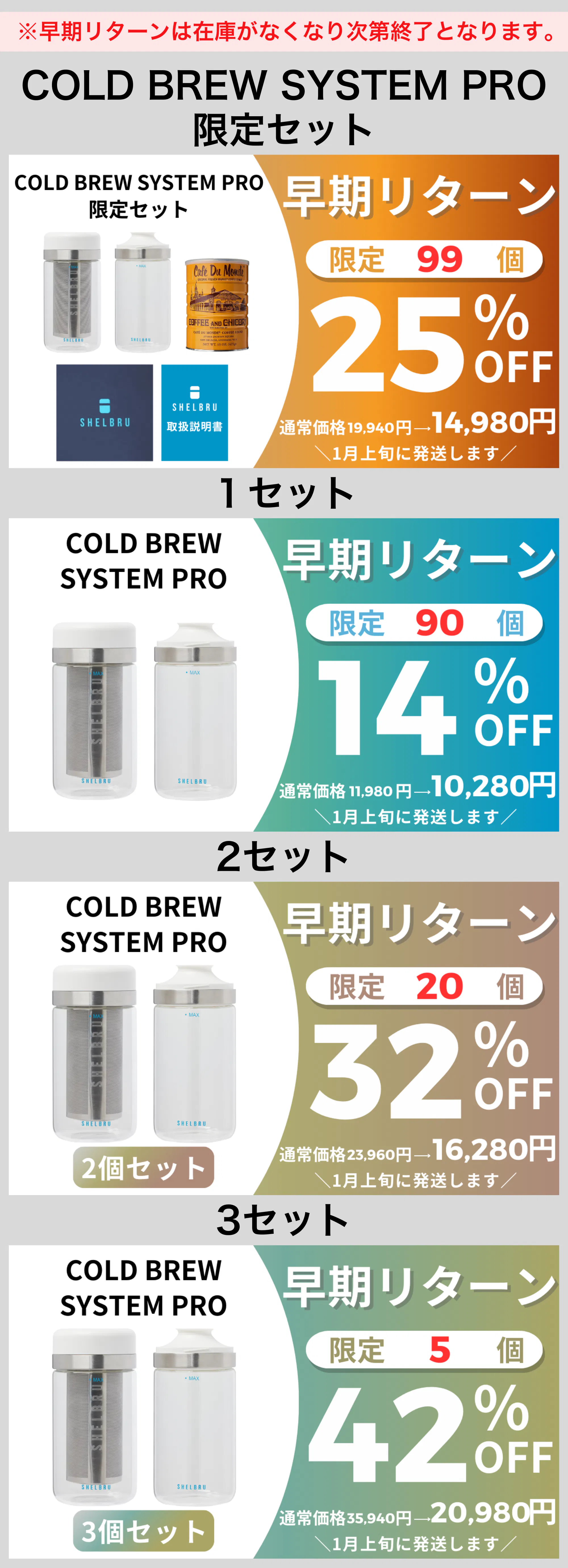 大人気SHELBRU COLD BREW SYSTEM PROが帰ってきました!