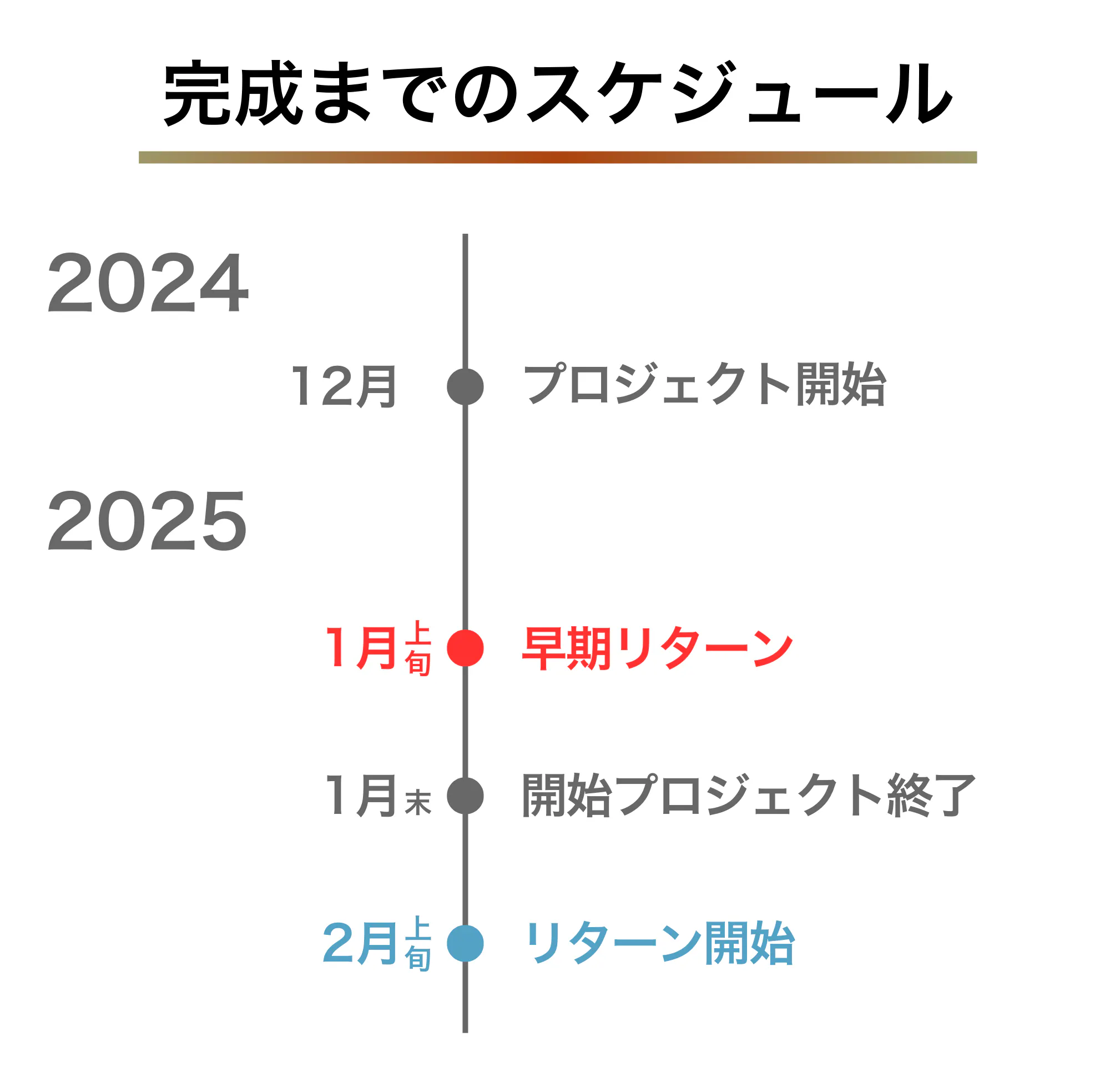 ※本文中に記載させていただいたスケジュールは、あくまでプロジェクト公開時点の予定です。クラウドファンディングを経て輸入を行う性質上、配送遅延のおそれがございます。