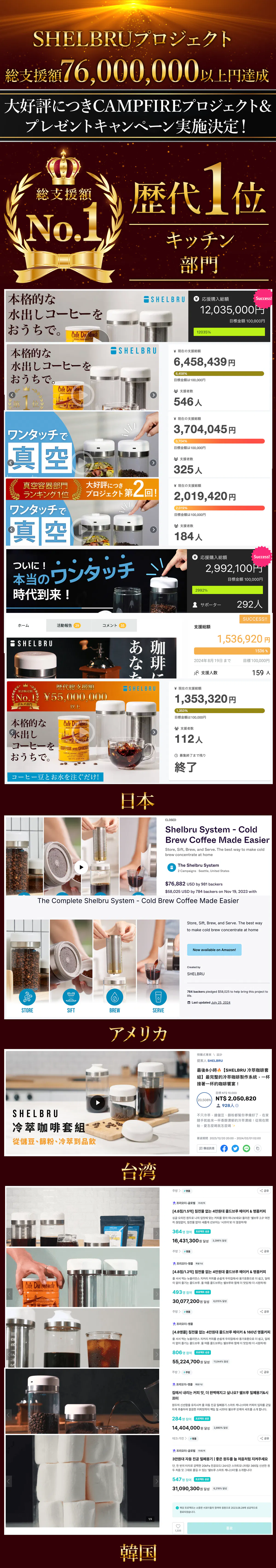 SHELBRUのCOLDBREW SYSTEM PROは簡単に美味しいコーヒーが作れる優れもの。皆様のコーヒーとの生活がより楽しくなるよう、私たちは製品を絶えず企画し、開発しています。より多様なコーヒー抽出ツール、グラインダーなど様々な製品をこれからも製作する予定です。