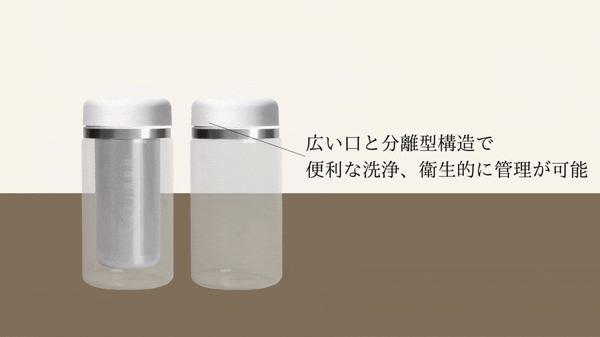 広い口と分離型構造で便利な洗浄