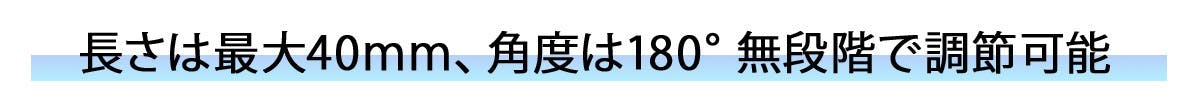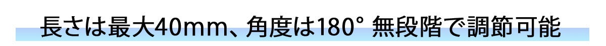 長さは最大で40mm延長可能、角度は180°無段階で角度調整なので、視界を遮らずに多角度で調整していただけます。