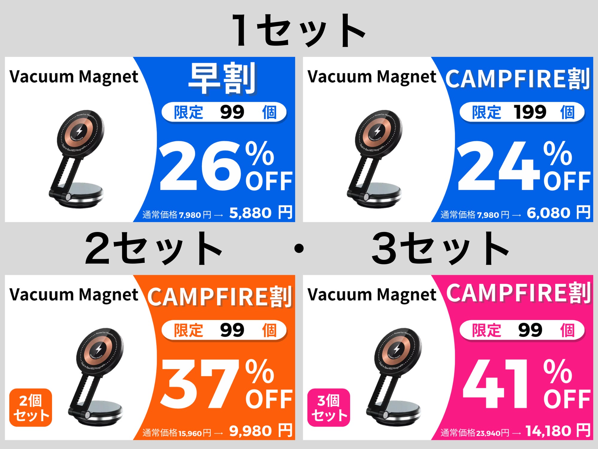 大好評をいただき大成功したVacuumシリーズを記念して、CAMPFIREだけの購入者限定プレゼントキャンペーンを実施します!ご支援者様の中から抽選で当たった方に、なんとVacuum Magnetをもう1つプレゼント!!