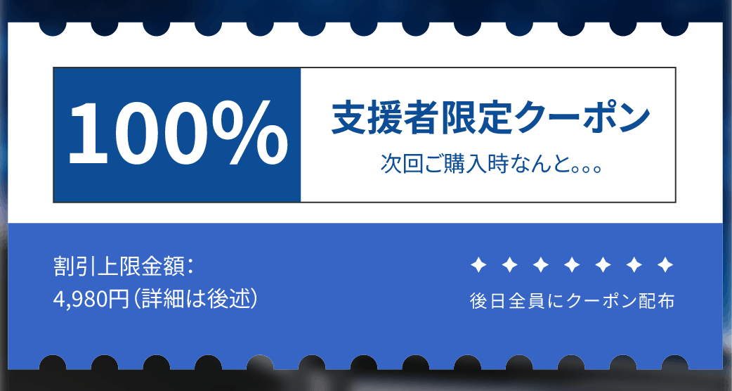 今回のVacuum Magnetを購入していただいた方限定で、【第3弾のプロジェクト】で使える【100%OFFクーポン】をプレゼント致します!!!
