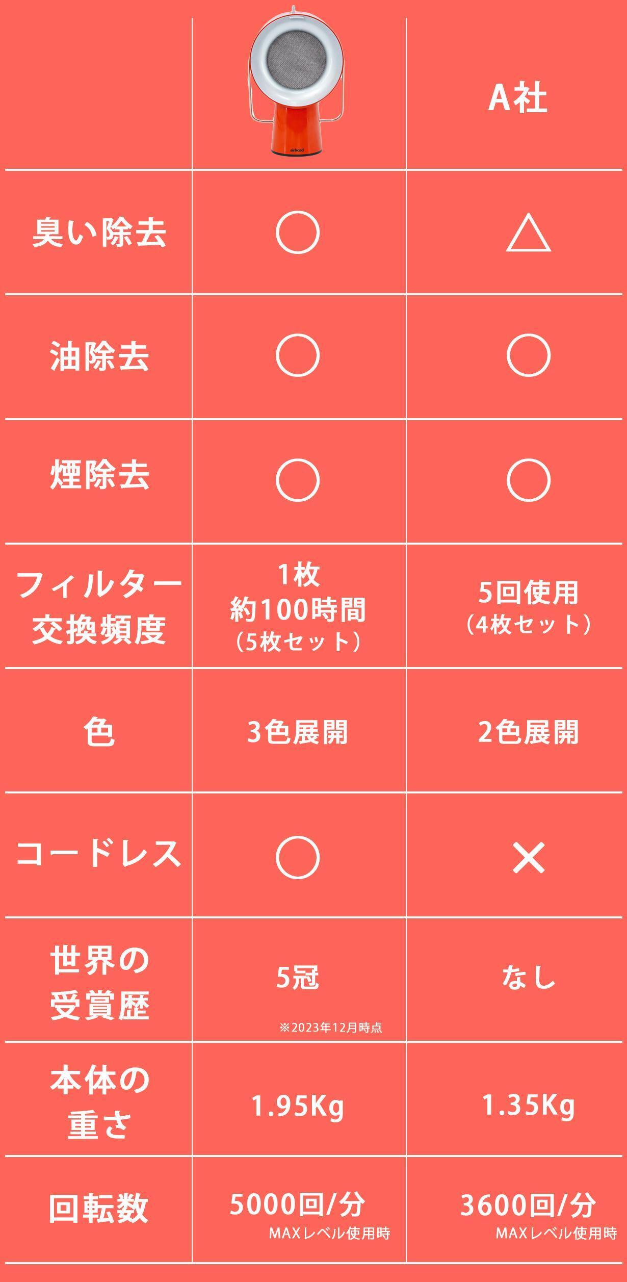 A. 排気した空気を別の場所に向けるのではなく、Airhoodの背面から排出され、非常に効率的に再循環させます。