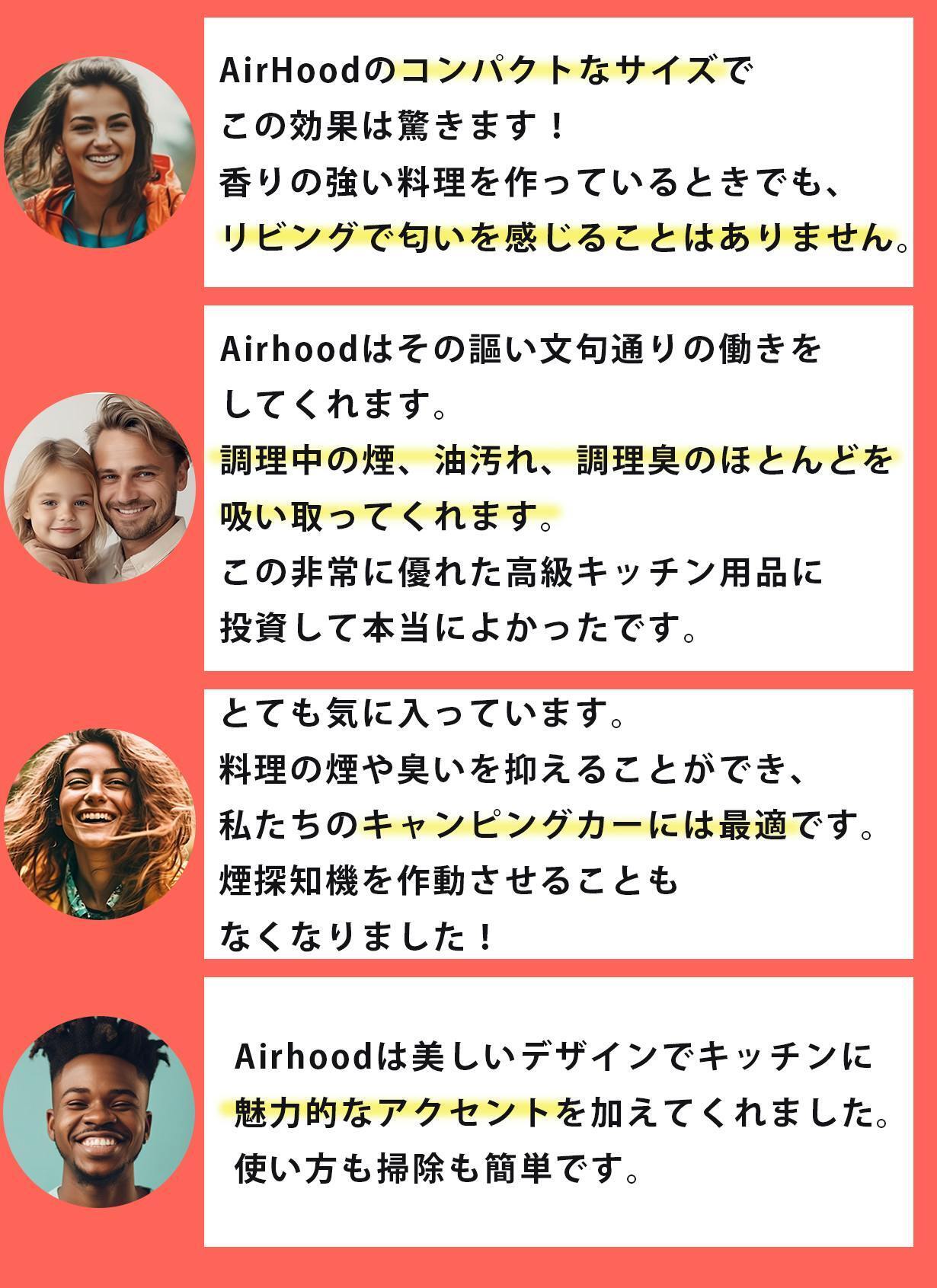 AirHood™は炭フィルターとオイルフィルターを備えたデュアルフィルター技術を搭載しているため、