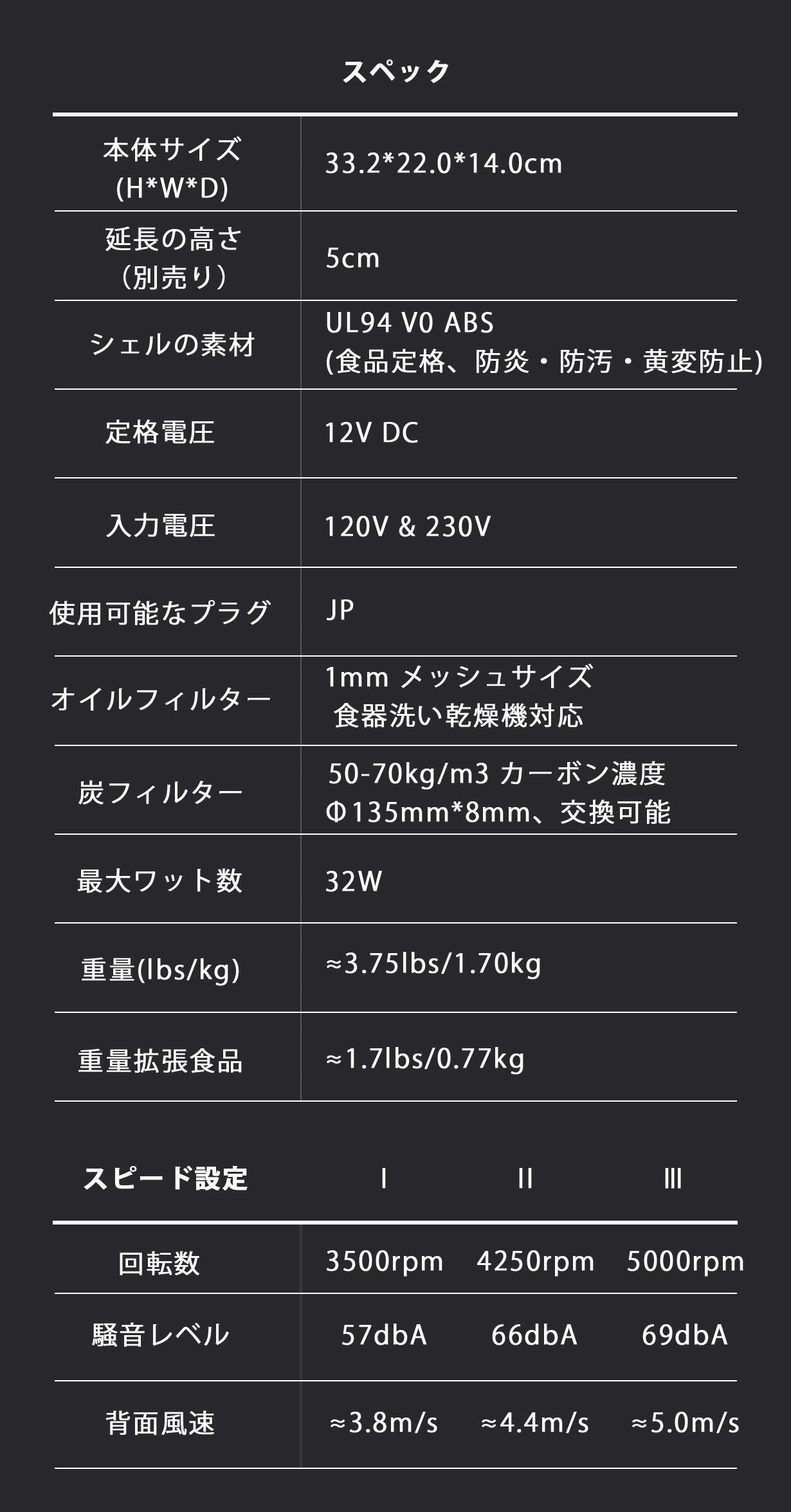 みなさんのご自宅の換気扇の音はどうでしょうか?Airhoodはレベル1〜レベル3で57dbA〜69dbA程度です。