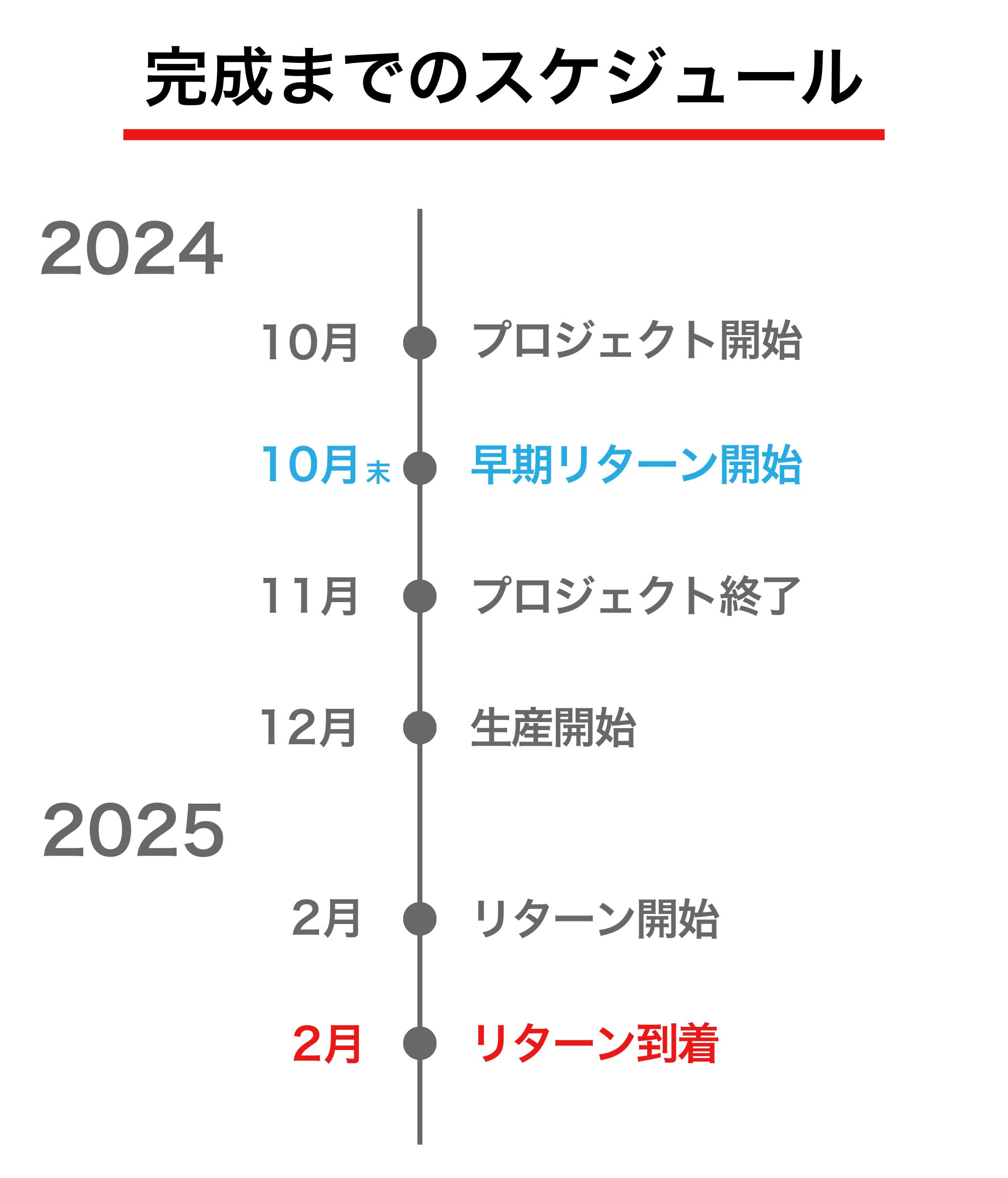 ※本文中に記載させていただいたスケジュールは、あくまでプロジェクト公開時点の予定です。 クラウドファンディングを経て輸入を行う性質上、配送遅延のおそれがございます。