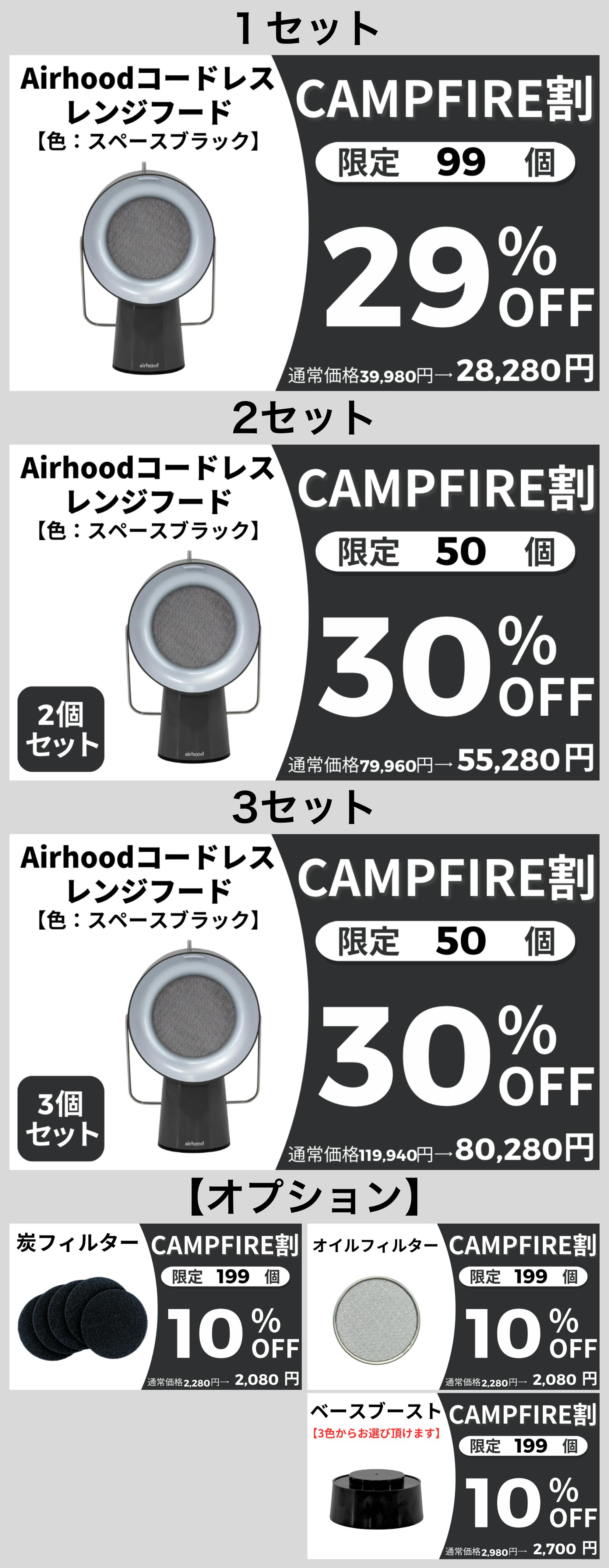2025/12/22 21:00\CORDLESS PORTABLE HOOD紹介/こんばんは、BRIGHT DIYです。今回は皆さまに「おうち焼肉やBBQの煙対策に。5段階吸引+活性炭フィルターで煙・臭いを強力吸収。180°調整、卓上・吊り下げ対応で屋内外に活躍」プロジェクトを紹介させて頂きます。プレビューページをお気に入り登録して公開をお待ちください! 煙・油・ニオイを瞬時に強力吸収する場所を選ばないコードレス換気扇最大割引は41%OFF!高割引率は数量限定です!ここだけの限定割引を見逃さないよう、ぜひお気に入り登録して公開をお待ちください!お気に入り登録することで公開されたらメールでお知らせいたします!プレビューページはこちら >>> https://camp-fire.jp/projects/898501/view >>> クーポンのURLはこちら <<<※公開日からクーポンリンクが使用できます。プレビューページはこちら >>> https://camp-fire.jp/projects/898501/view 今後とも、何卒よろしくお願い致します。BRIGHTチーム もっと見る