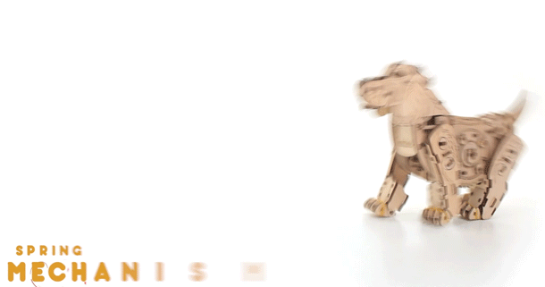 A6:ゼンマイで動かします。猫・クモ・恐竜・亀は輪ゴムのゼンマイ、犬はステンレス製のゼンマイです。