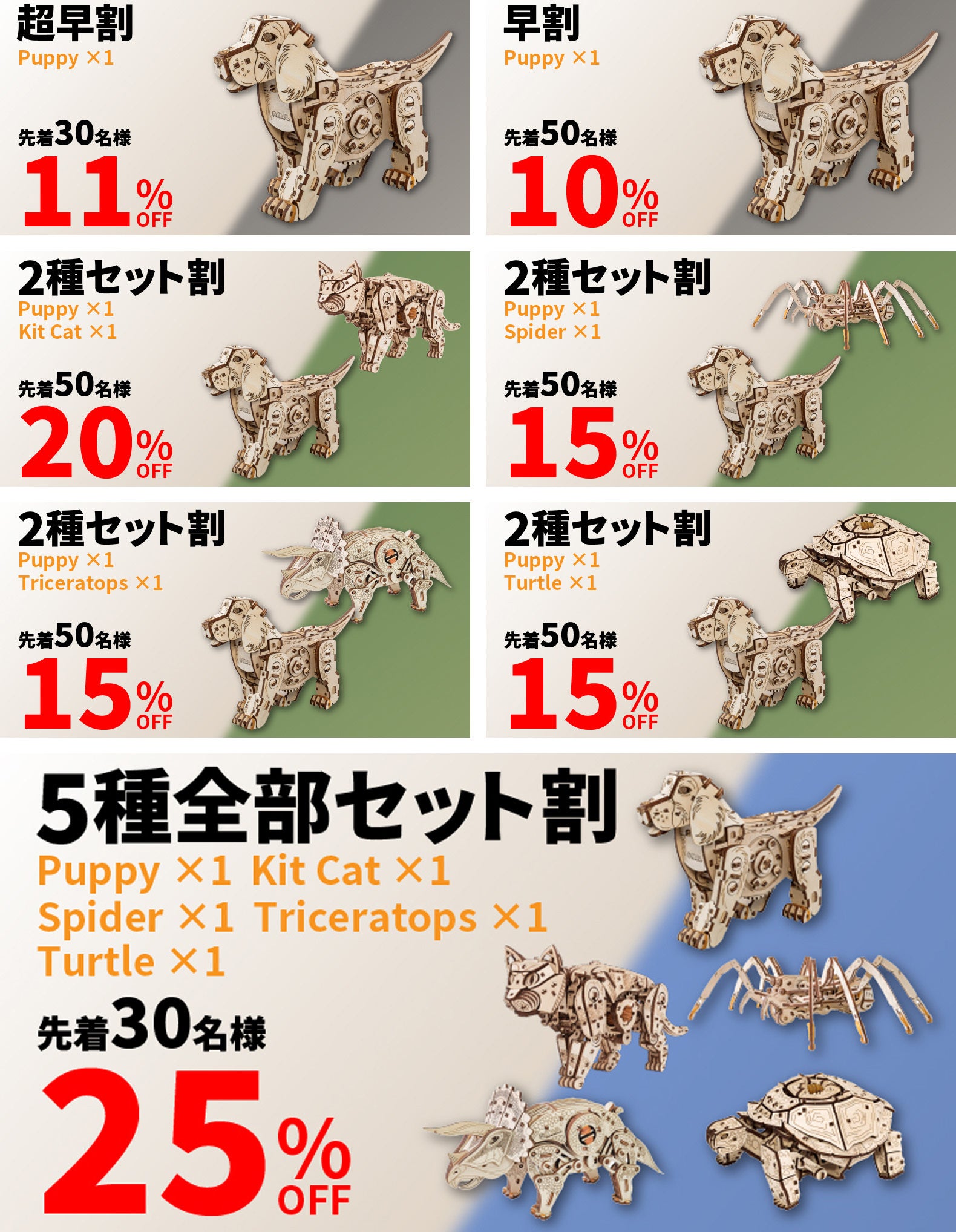 Puppy単体でもお楽しみいただけますが、machi-ya限定で他の動物とセット販売もご用意!