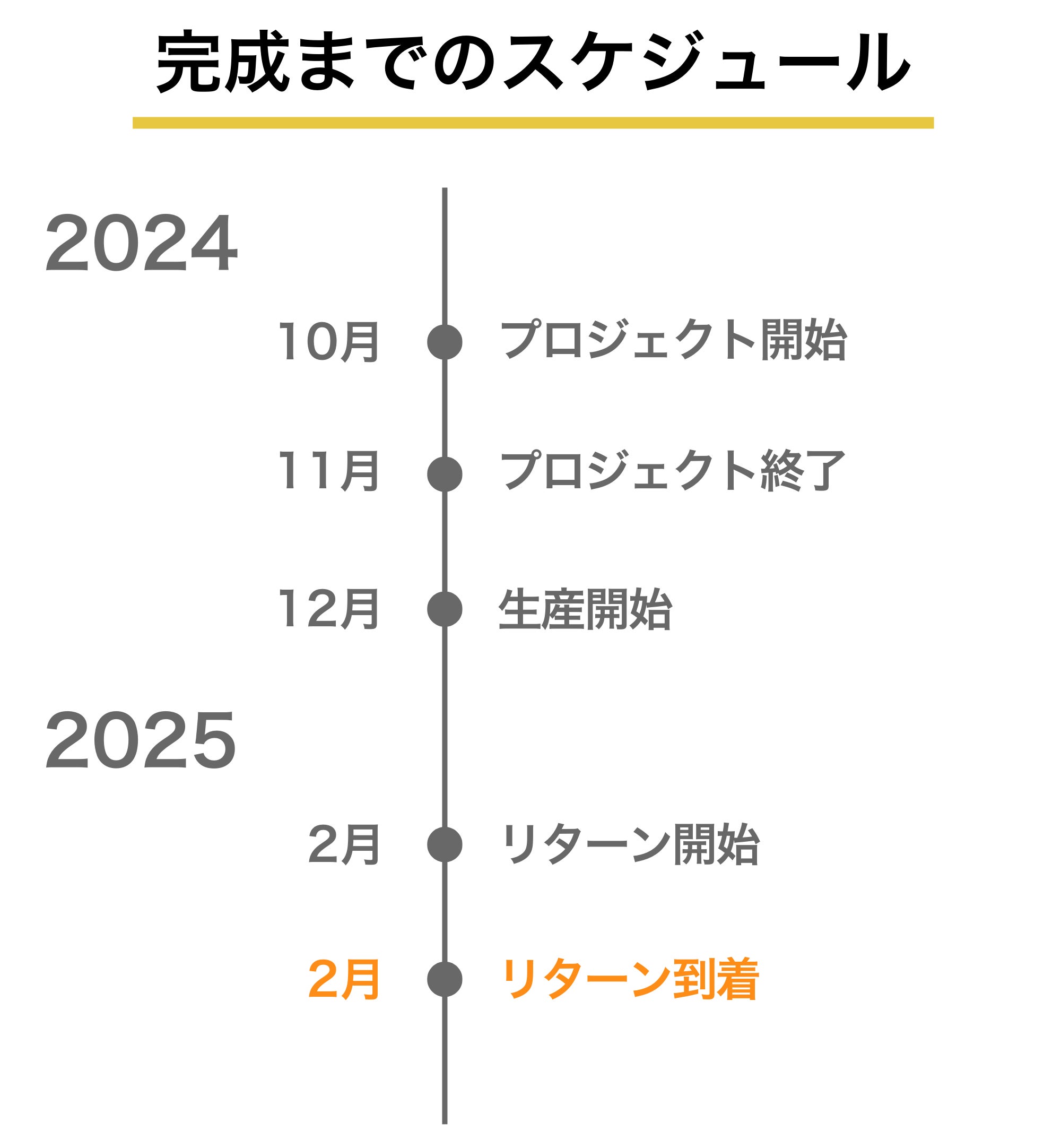 ※本文中に記載させていただいたスケジュールは、あくまでプロジェクト公開時点の予定です。支援の性質上、配送遅延のおそれがございます。