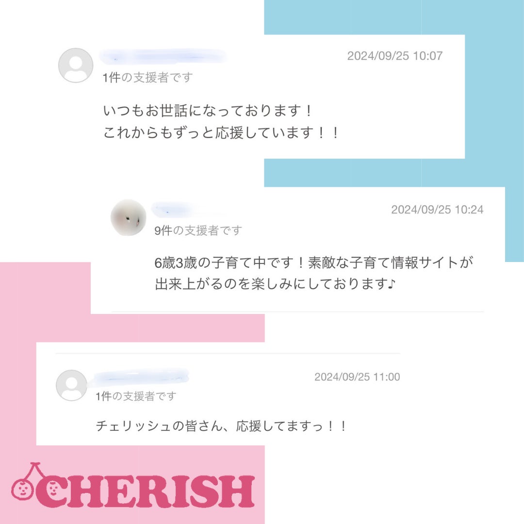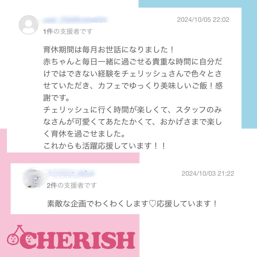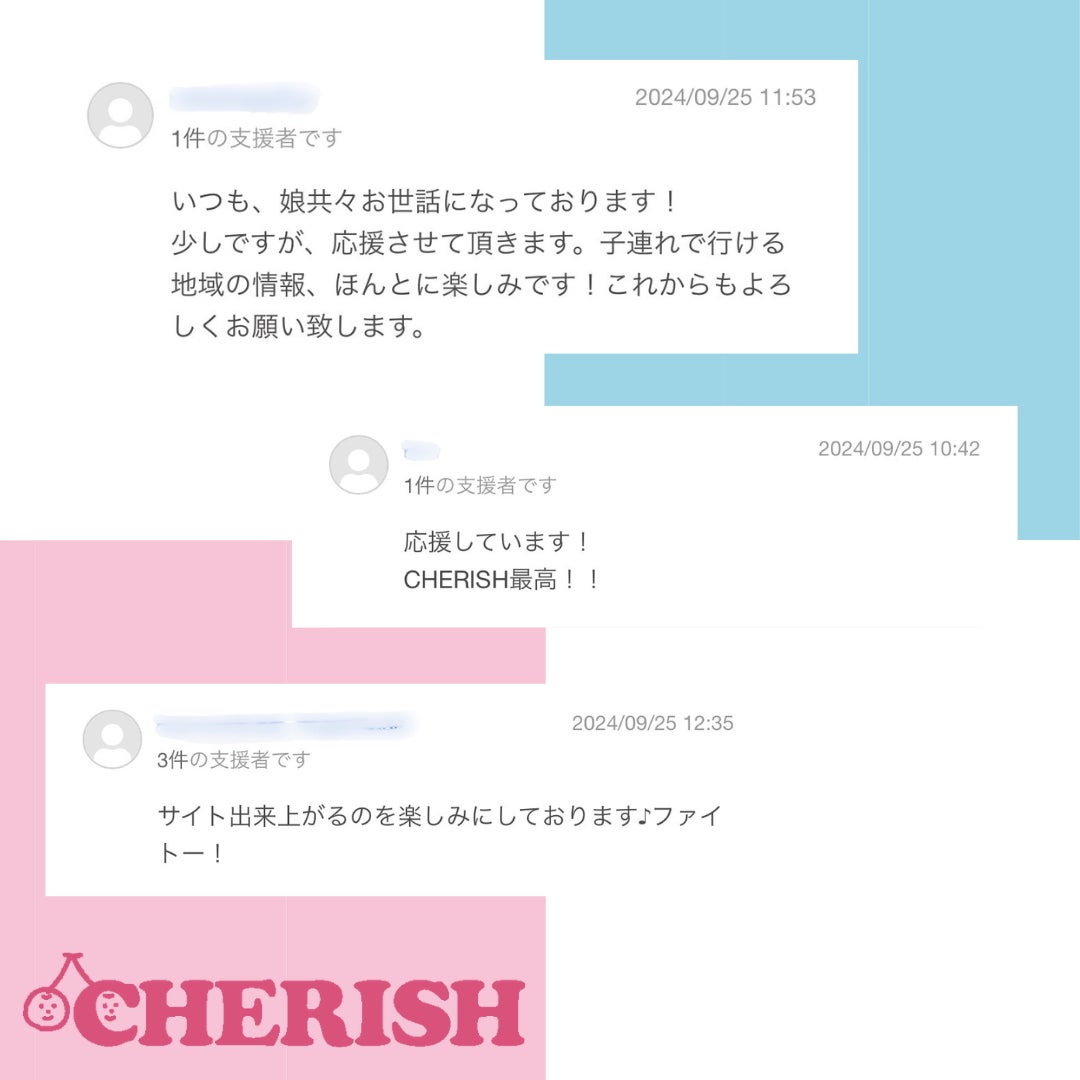 CHERISHを利用したことのあるママ達からのお言葉や、期待してくださっている方、応援してくださっている方のお言葉・・本当にありがとうございます!