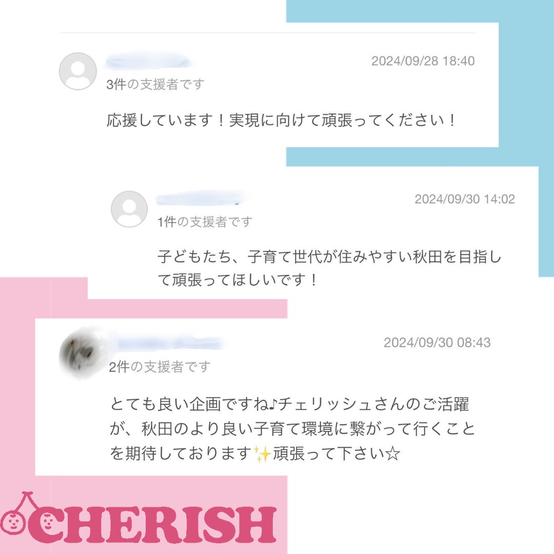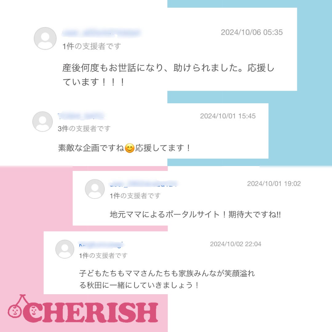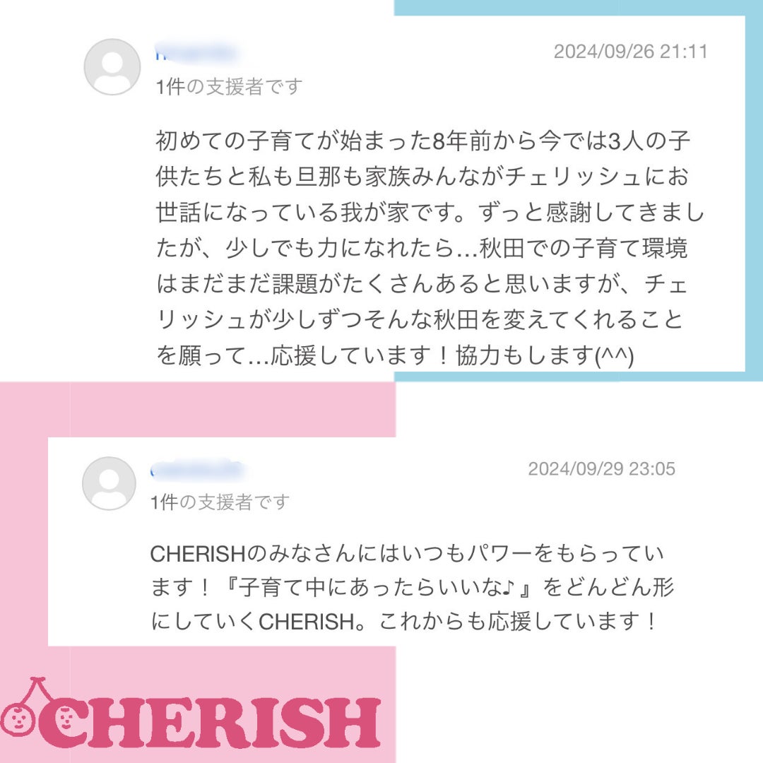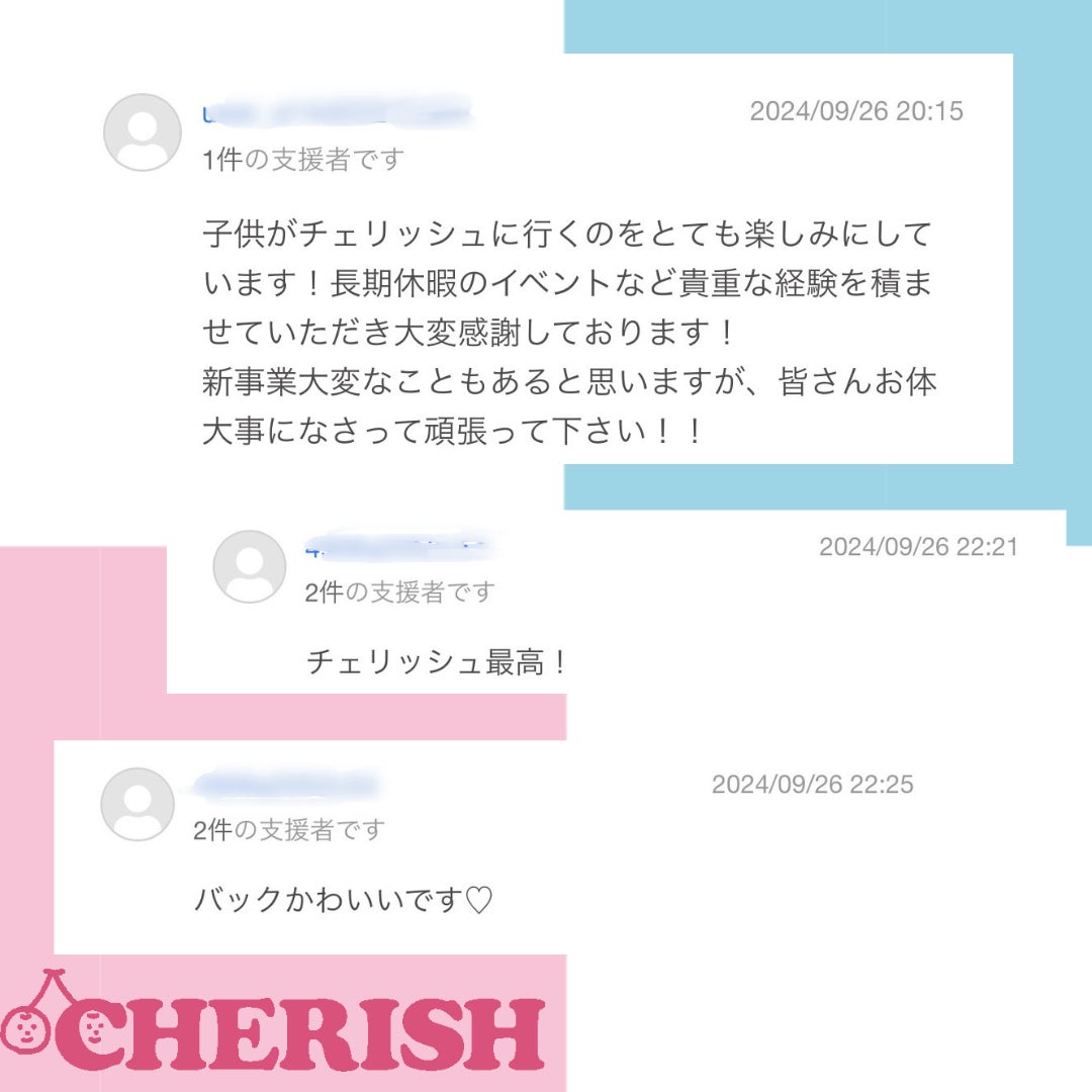 CHERISHを利用したことのあるママ達からのお言葉や、期待してくださっている方、応援してくださっている方のお言葉・・本当にありがとうございます!