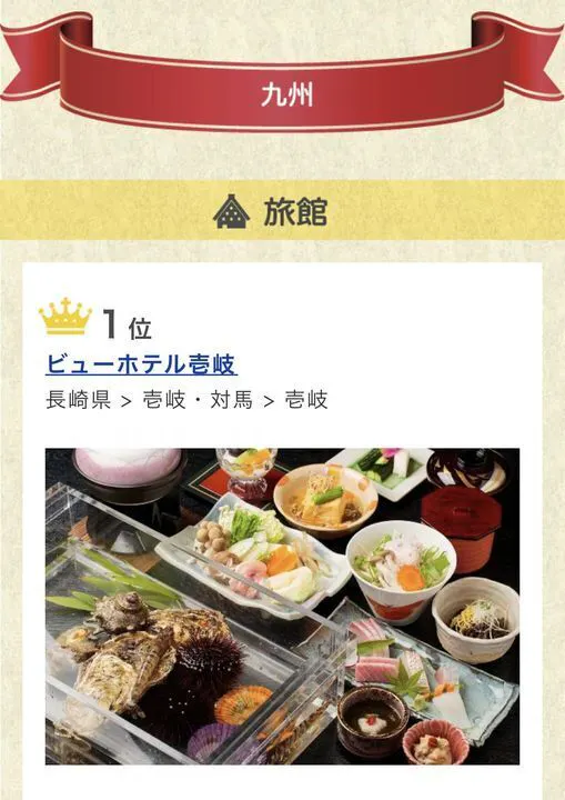 じゃらんnet「口コミ九州夕食がよかった旅館ランキング」で1位に