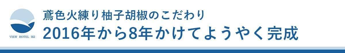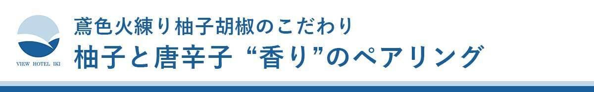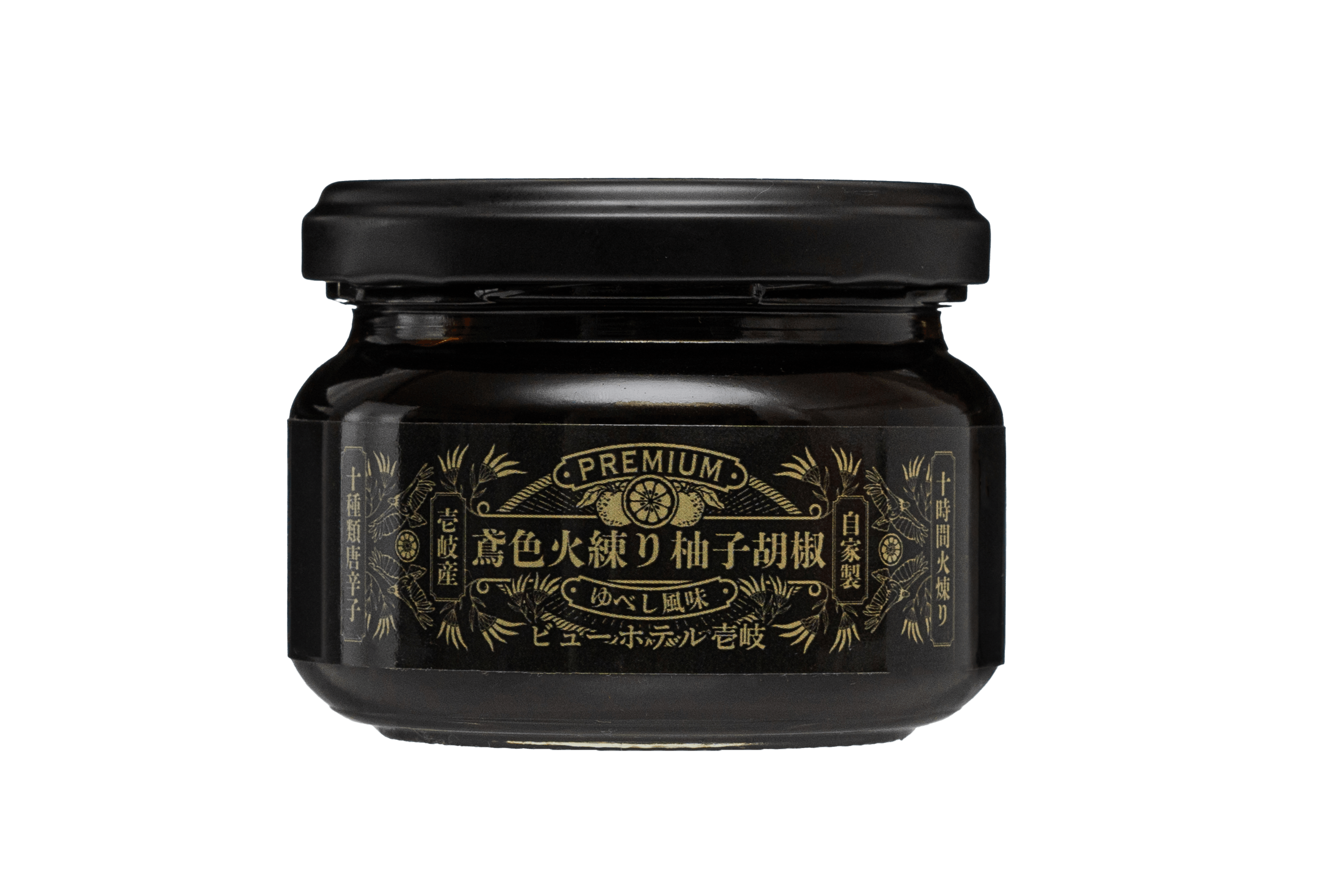 鳶色火練り柚子胡椒は、ビューホテル壱岐オリジナルの薬味。ご覧の通り、一般的な柚子胡椒と違って鳶色(鳶の羽根のような茶色)をしています。壱岐島の伝統薬味「ゆべし」を独自の解釈で進化させた、当ホテルオリジナルの新しい薬味です。