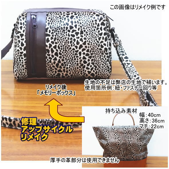 ■リメイクのためバッグや衣類等の素材をお客様よりお預かりしますがお預かり後に発生する傷や汚れは弊店では責任を負いかねます。