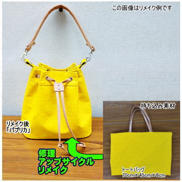 巾着型バッグ「パプリカ」にリメイクしてお客様にお届けいたします。