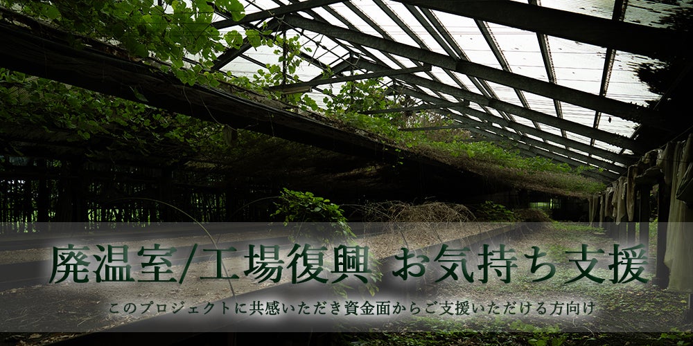活動に共感して頂き、資金面からご支援いただける方向けのリターンになります。(支援金を廃温室・廃工場復興の為に使用させていただきますます)プロジェクト終了後に感謝のメッセージをメールにてお送りさせて頂きます。