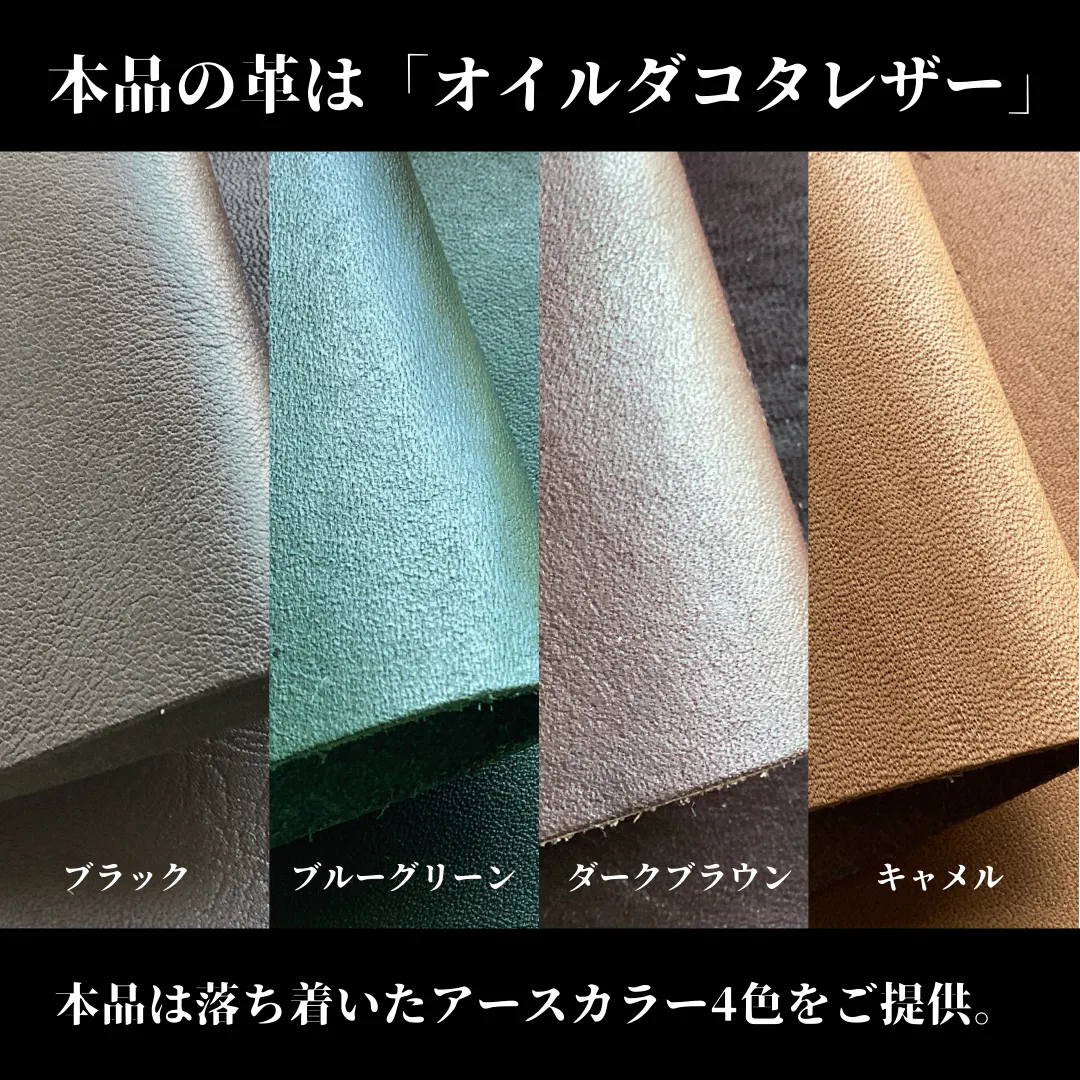 オイルダコタレザーは、国産の鞣(なめ)し技術によって作られた高品質な革で、クローム鞣しとタンニン鞣しを組み合わせて絶妙なバランスを実現しています。