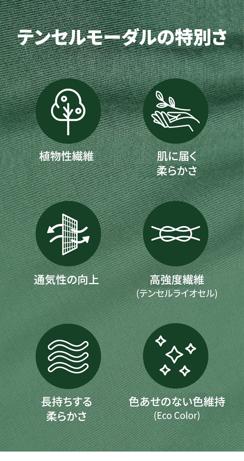 日本では馴染みのないモーダル生地は、アンダーウェアや洋服、布団に使用するプレミアム生地です。