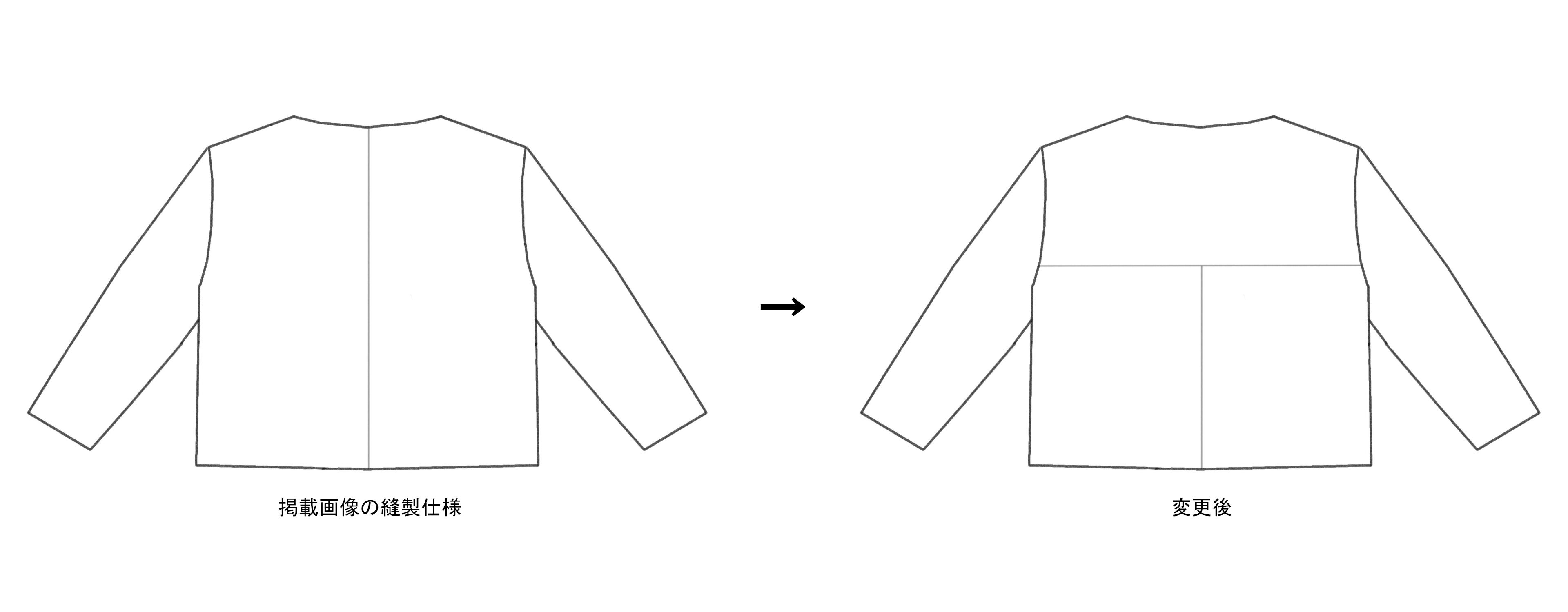 縫い目のかかる襟周りのデザイン上の違和感の改善や革素材を大きく使う必要があることで、1枚のパーツの中で素材の個体差が大きく表れる可能性があることを考慮した結果、身頃の縫製仕様の変更を決定いたしました。掲載画像の縫製仕様は身頃中央に縫い目が1本のみの仕様ですが、リターン品はT字に縫い目が2本入る仕様へと変更予定となります。