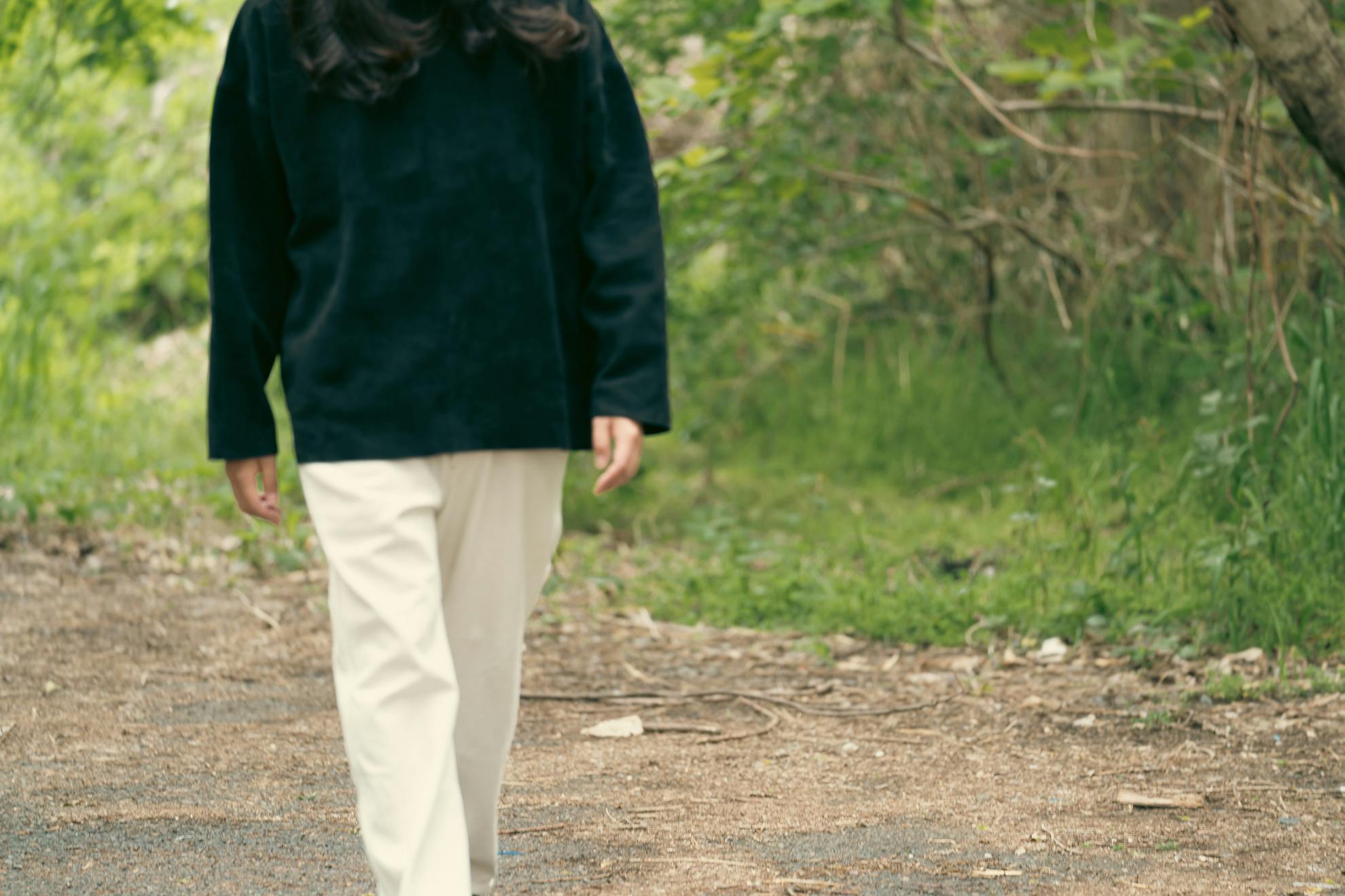 肩幅、身幅を大きめに取ったデザインでたっぷりとしたスモックデザインとなっていますが、袖先をわずかにテーパード(細めた仕様)させることで、アウターを重ねやすいような設計になっております。