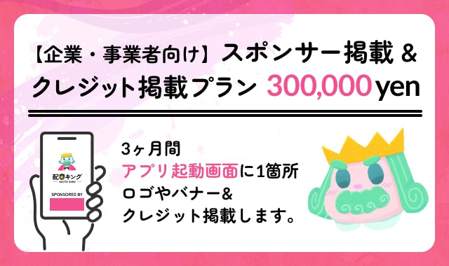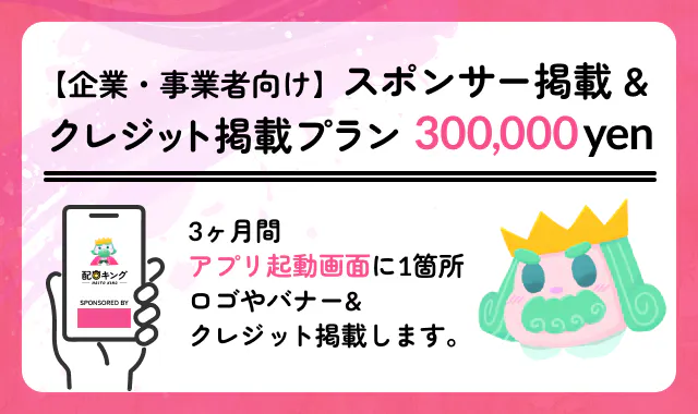 ・アプリ内Thanksページに御社の「ロゴ」か「お名前」を3ヶ月間掲載します。
