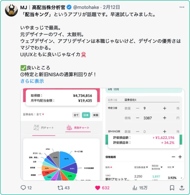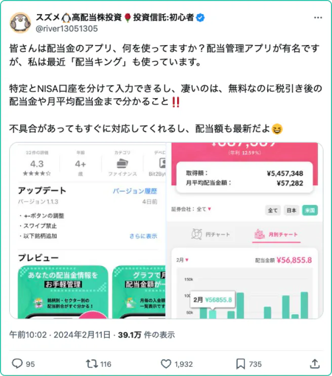 配当・資産管理アプリ[配当キング]のご利用ユーザー様、いつもご利用いただき、誠にありがとうございます!