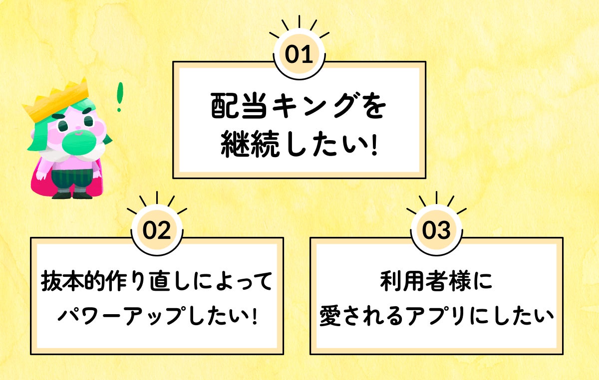 これからもユーザー皆様と一緒に配当キングを成長させていきたいです。
