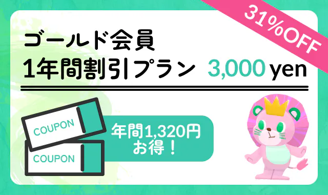 ※すでにゴールド会員の方は次回更新より1年間無料になります。