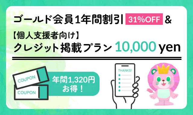 【個人支援者向け】ゴールド会員1年間割引&クレジット掲載プラン