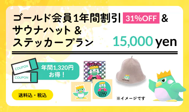 【クラファン限定】ゴールド会員1年間割引&ミニタオル&サウナハットプラン