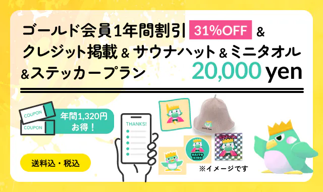 【クラファン限定】ゴールド会員1年間割引&ミニタオル&ステッカープラン