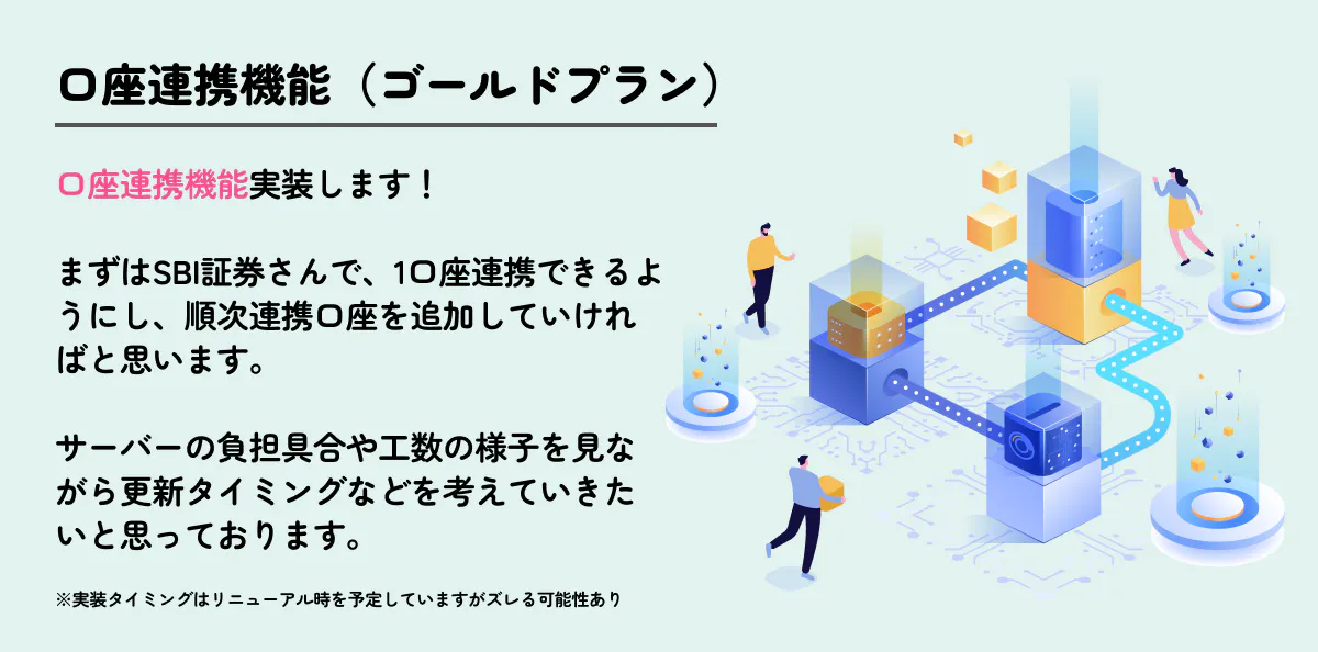 少しでも皆さんの管理が楽になるように、たくさんの方と交渉の末に口座連携機能を導入することにいたしました!!
