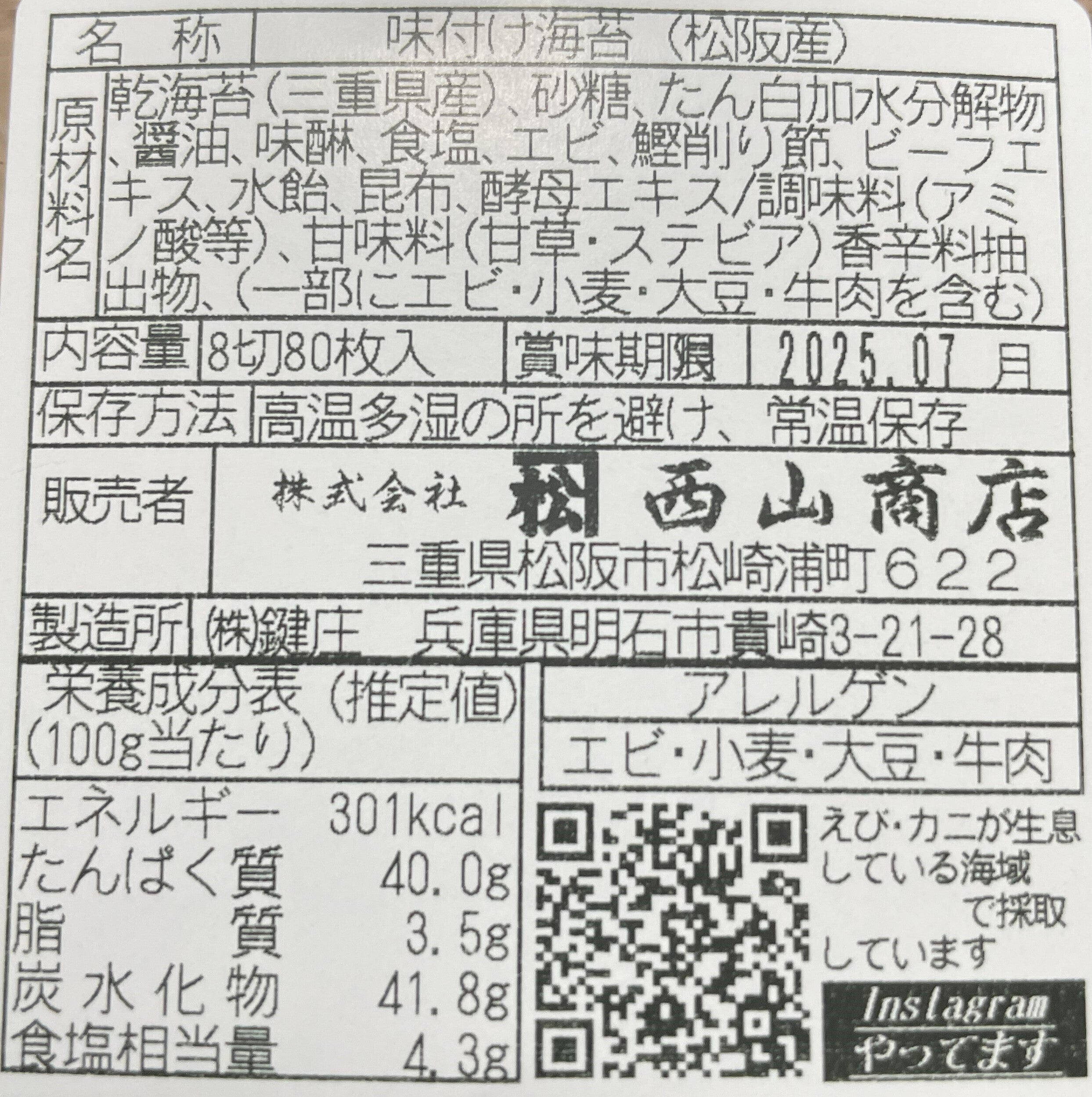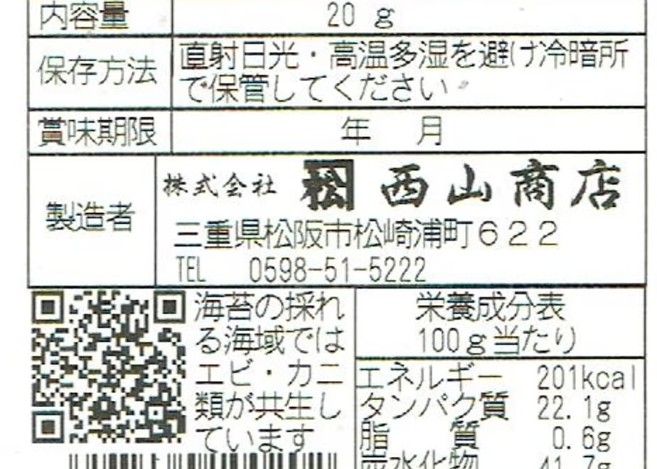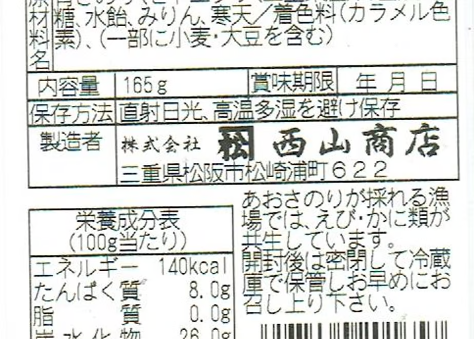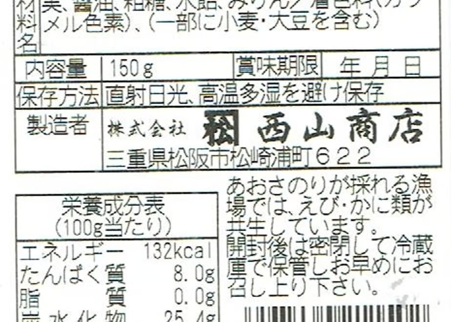 アレルゲン:小麦・大豆 また、青さのりの生育環境ではエビ・カニ類も生息しています。