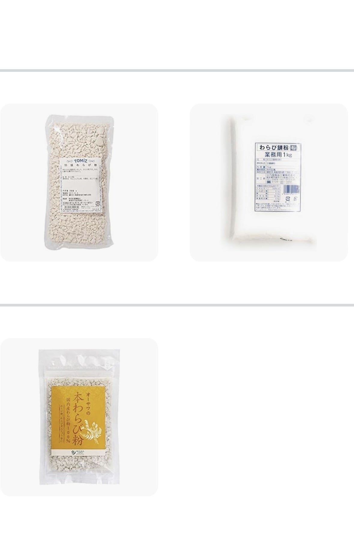 結局は自身の記憶と好みで仕上げることにはなりますが、3種類のわらび粉を少しずつ購入してみました。